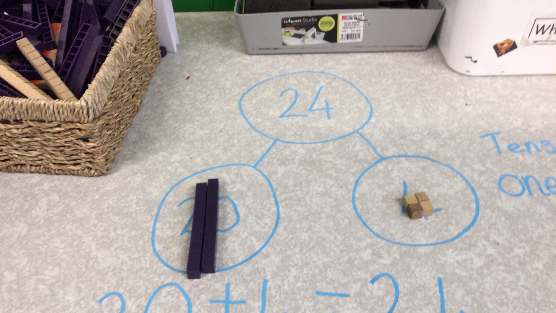 In maths, we have been focusing on multiples of ten and how to add them together. The children have explored the relationship between adding ones and adding tens, for example understanding how 1 + 2 = 3 links to 10 + 20 = 30. They have shown great enthusiasm and are becoming more confident when working with these concepts.