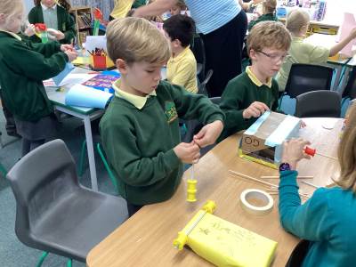 In DT, the children began exploring wheels and axles. They experimented with fixed and free axles using construction kits, discovering how different mechanisms work. They also learned and used technical vocabulary such as chassis, axle and axle holder. This practical experience will help them when they design and build their own racing vehicles for the exciting Downhill Dash, which they are already looking forward to.