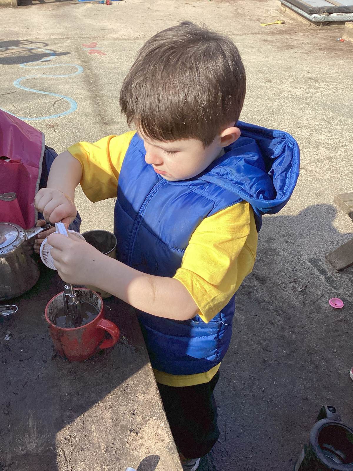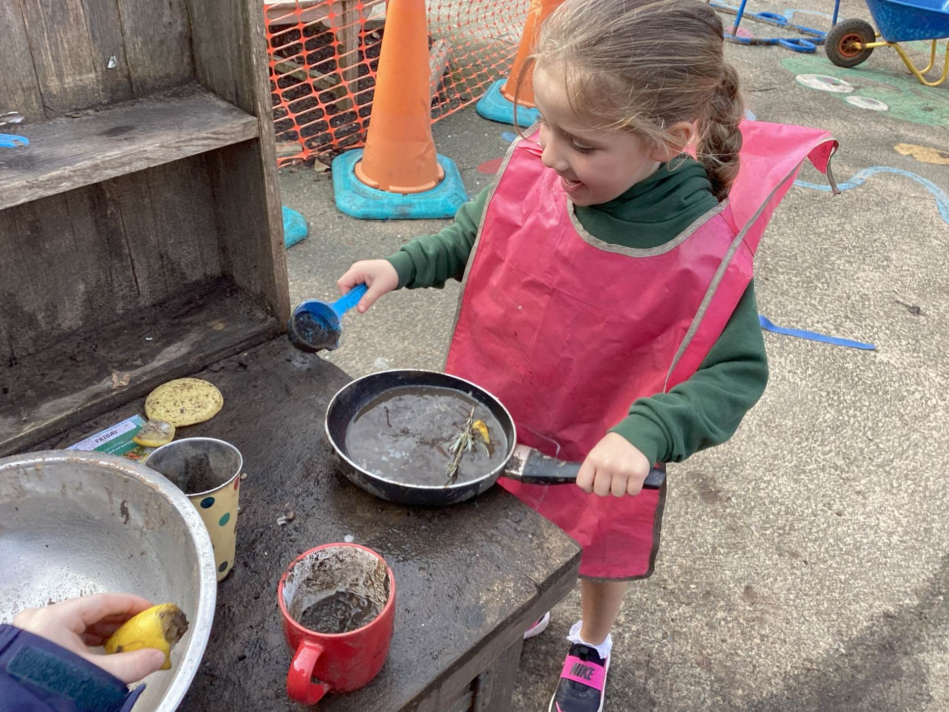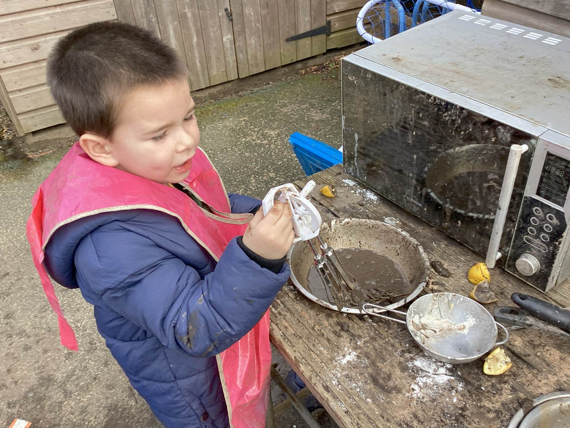 We enjoyed exploring the snowy playground on our first day back! We drew in the snow, scraped the snow, swept the snow and cooked with it in our mud kitchen! Some of us managed to catch a few falling flakes on our tongues too!