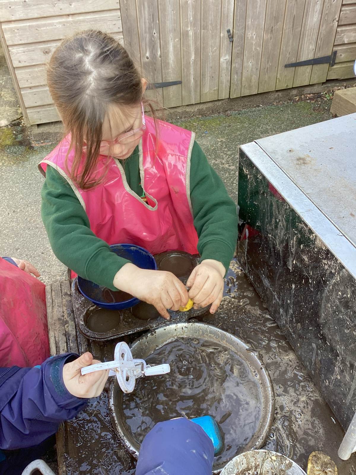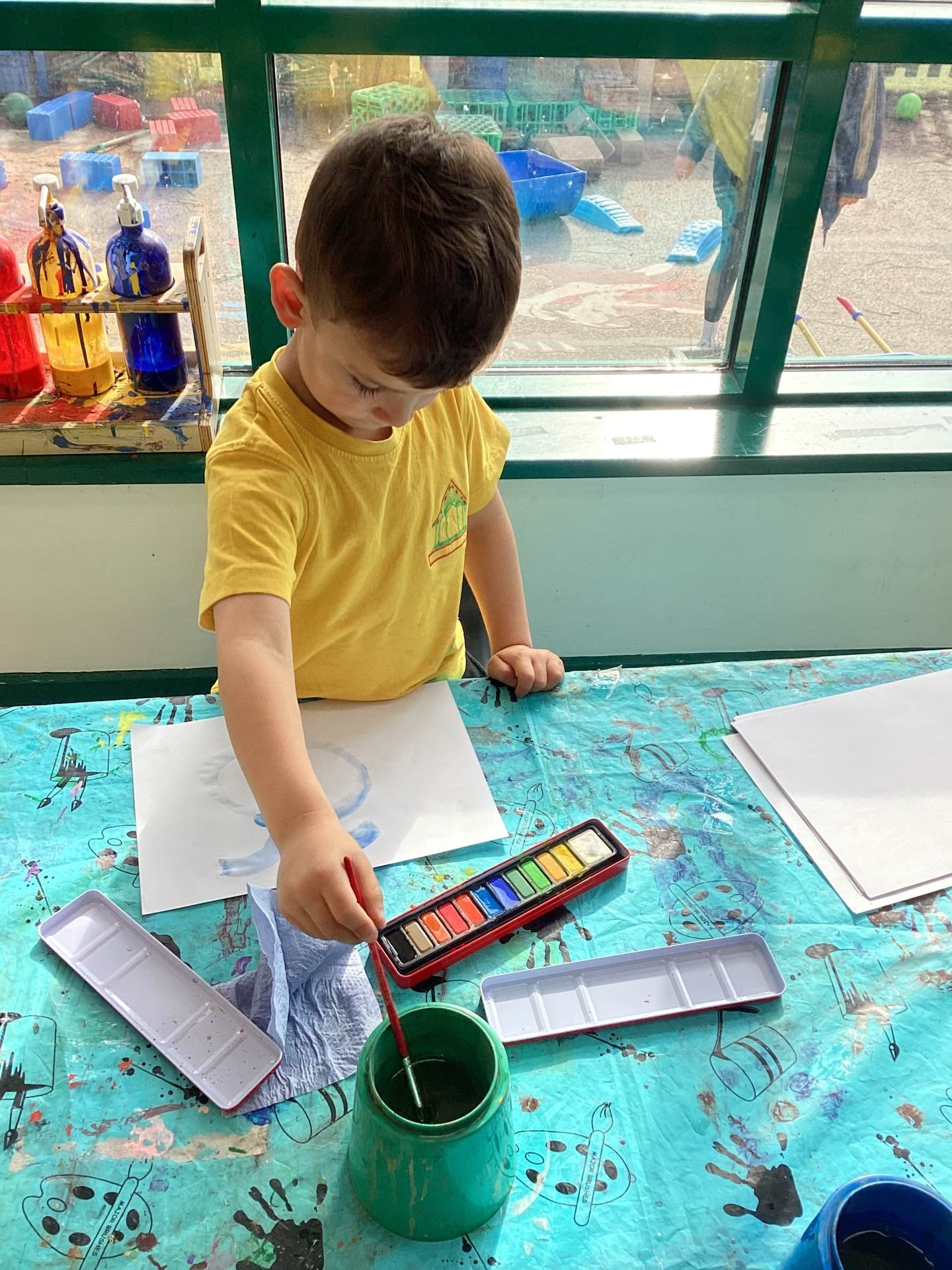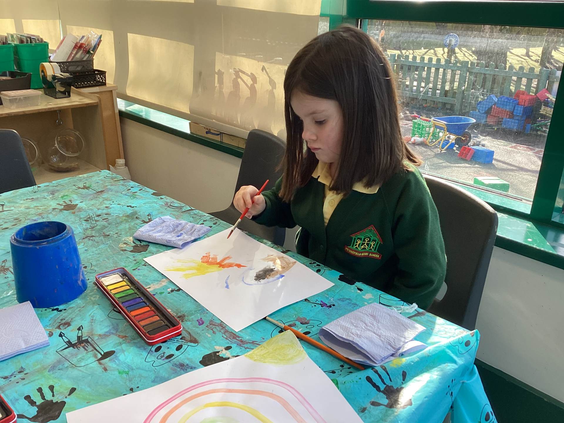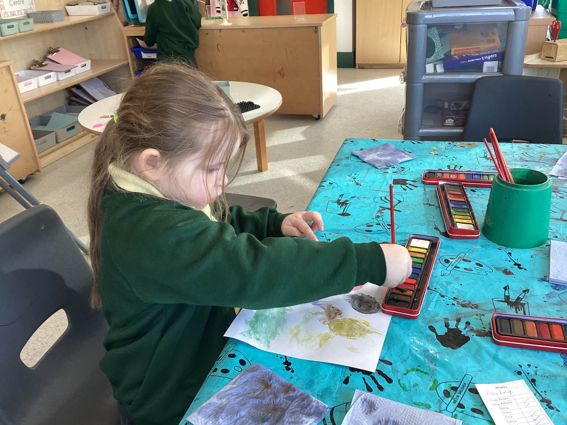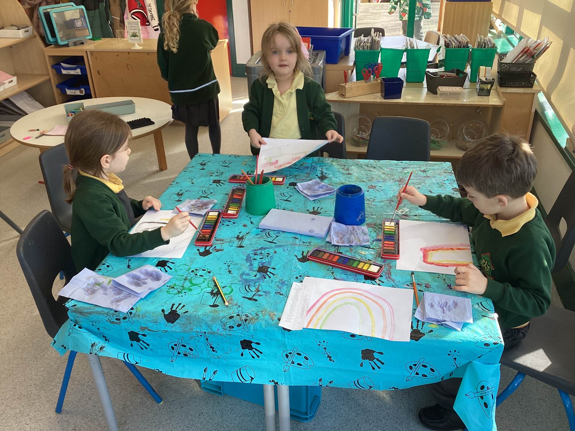 While painting, we have been developing our independence by helping each other and cleaning up afterwards.
