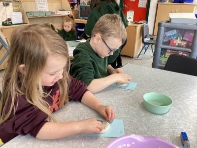In RE, we have been learning about the Jewish celebration of Shabbat. Shabbat is a special time for Jewish families and they lay the table with lots of objects that have special meanings such as bread, candles and wine. The children had fun using clay to make their own thumb pot to put their own special things in or to use at a celebration with their family.