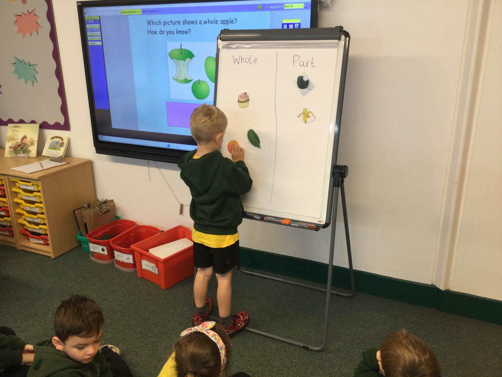 We had a lot of fun in maths this week cutting up carrots (paper ones, not real ones!) We were learning about wholes and not wholes relating to objects and groups of objects.