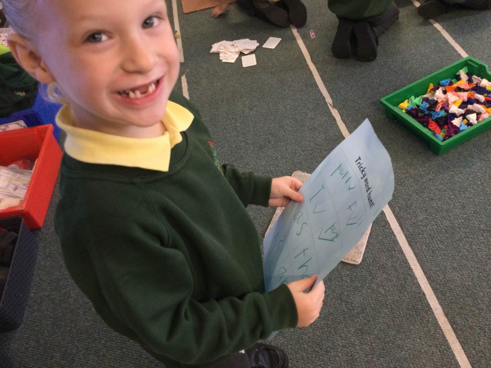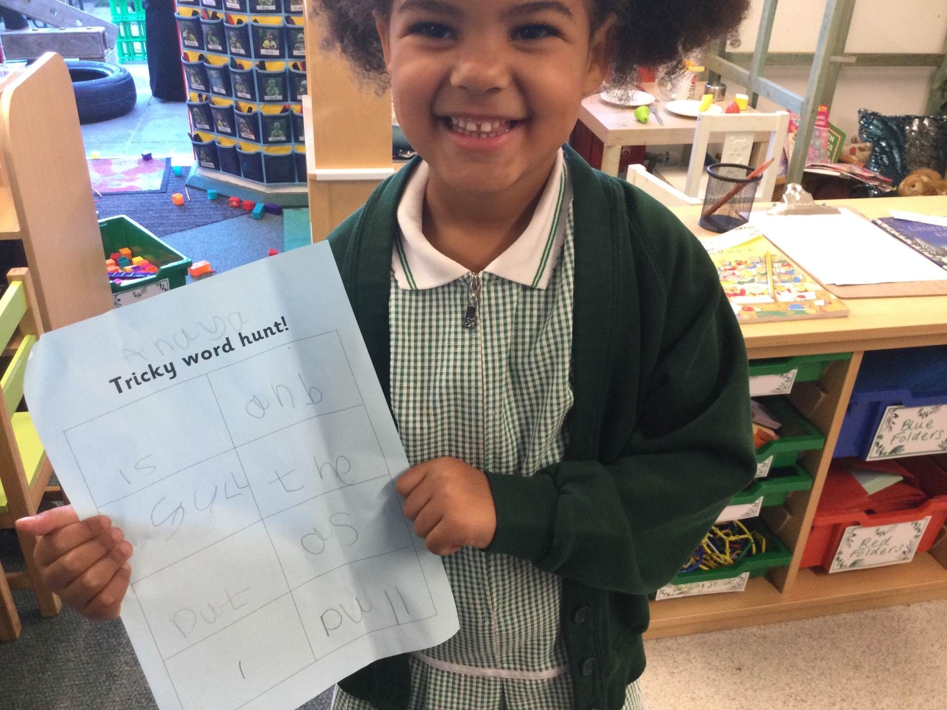 In Explore and Learn we carried on our science learning by testing which materials floated and which sunk. We practised using scissors to cut out little squirrels from 'The Leaf Thief' that we read last week. We are getting really good at our tricky words and made them out of magnetic letters before we wrote them.
