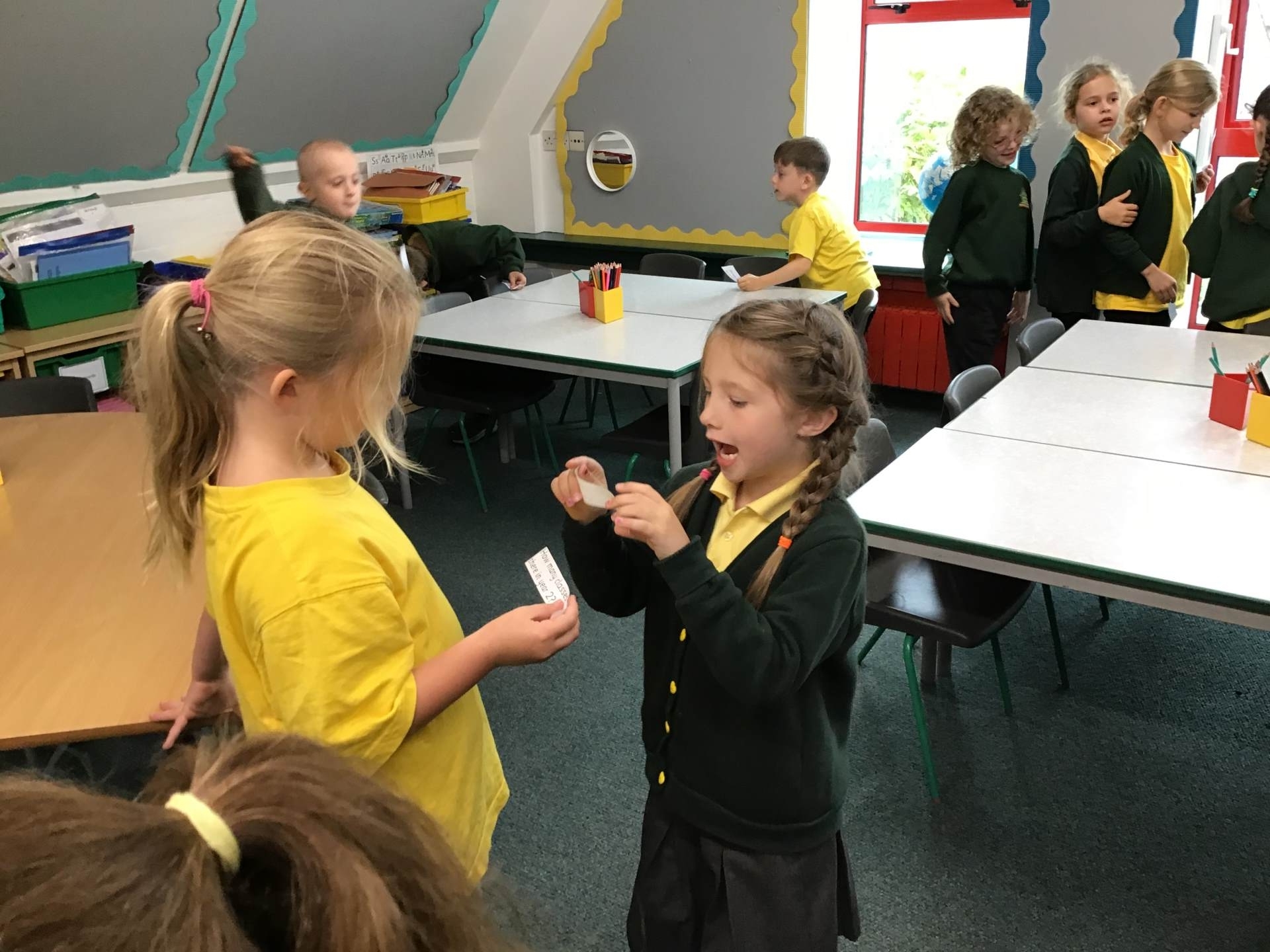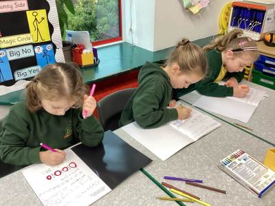 Wednesday was Positive Noticing Day. We were all spotted making the right choices - being kind, respectful to our friends and adults as well as showing resilience in our learning. We enjoyed writing a label for our friend on which we described what positive things we have noticed about them. We wore the labels home with pride.