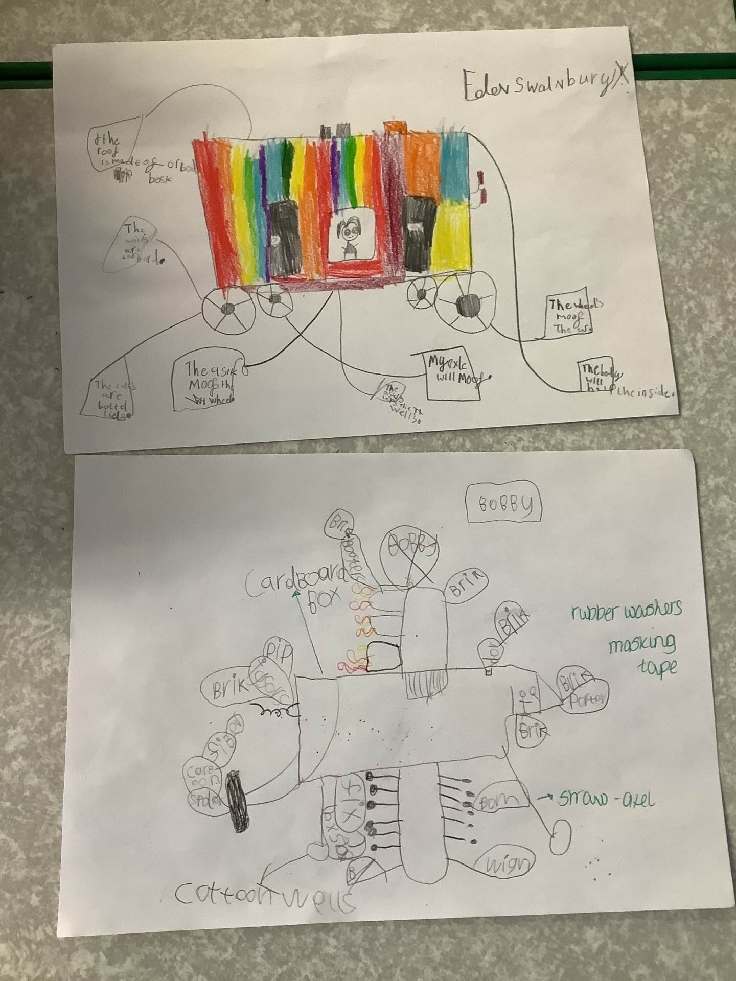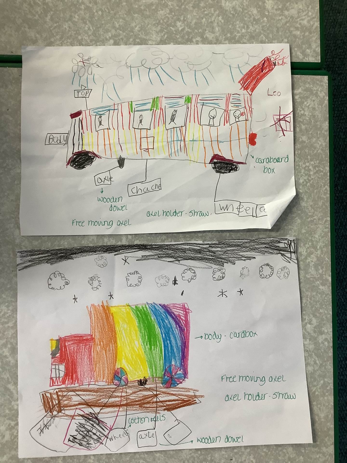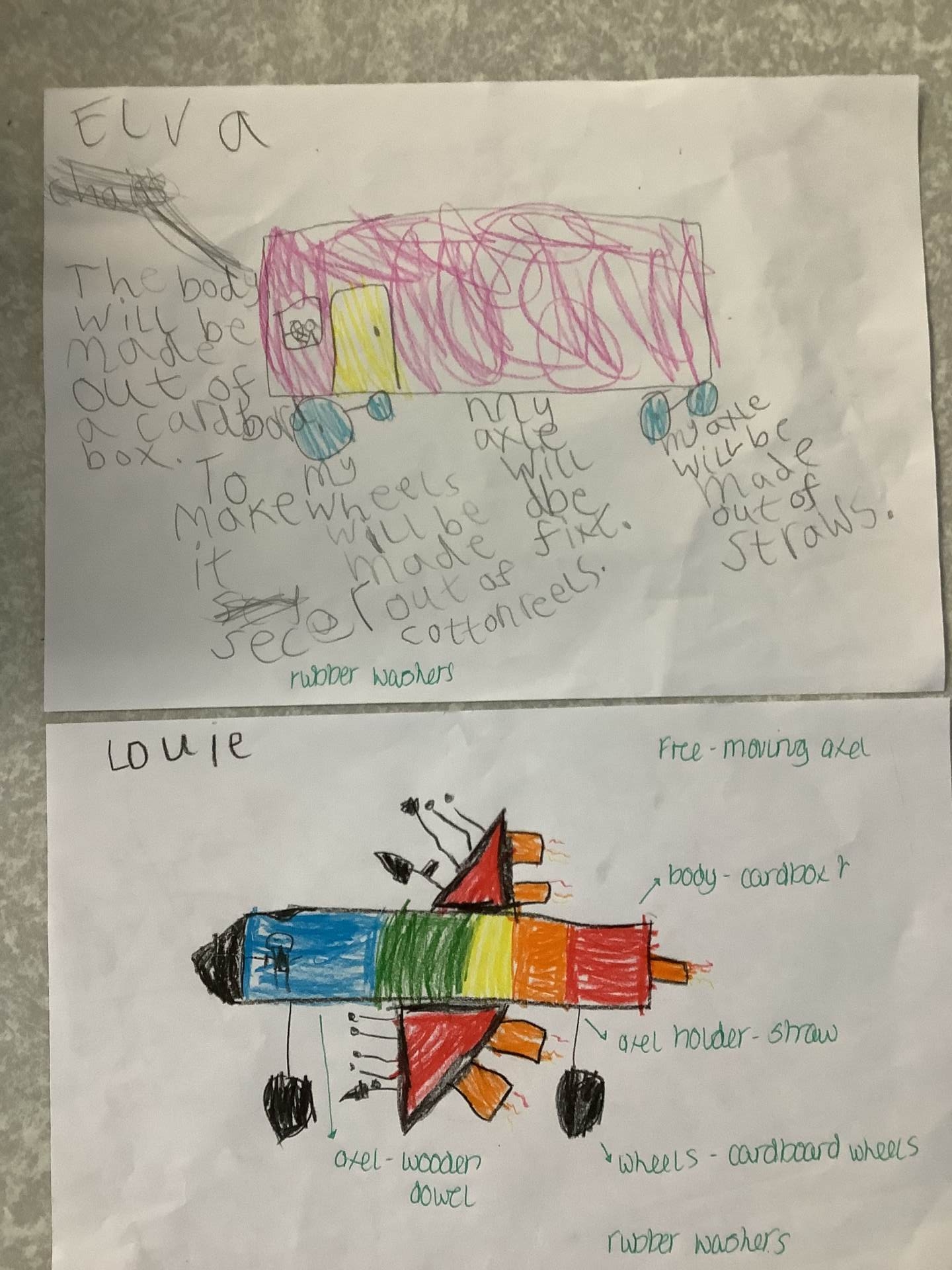 This week, we designed our own wheeled vehicle in DT, labelling the different parts. We had to decide what we were planning to use for our wheels, axles and chassis, as well as what the vehicle would look like. We also had to decide whether we wanted our vehicle to have a fixed or free axle. We used what we had learnt from last week's investigation session to help our decision making.