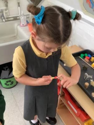 In Maths we have been thinking about what makes up a ten and our multiples of tens. We are starting to add and subtract a ten from a number.