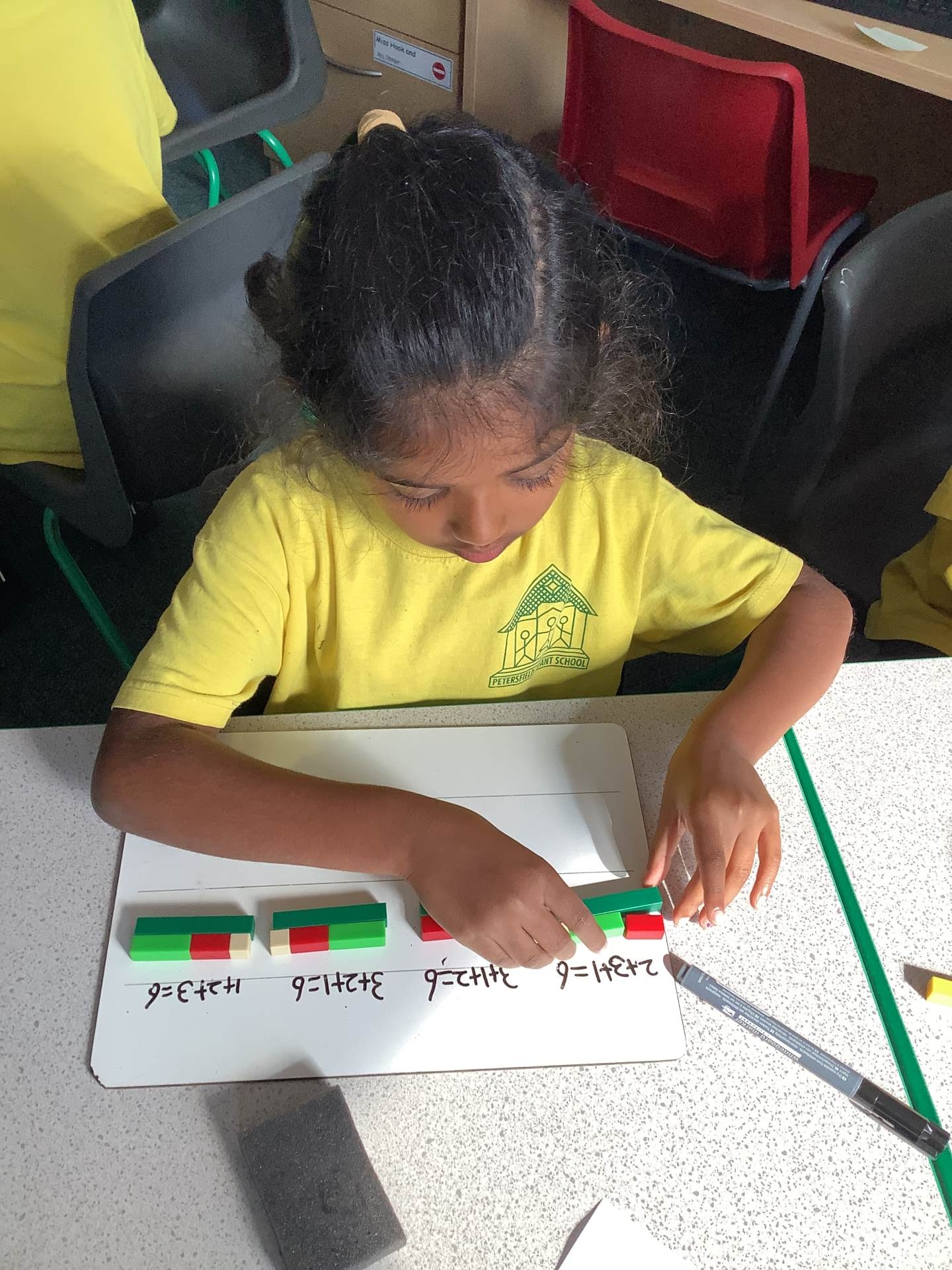 In Maths, we have been learning about subtraction as difference and solving problems such as, “A teacher has 8 children and 2 pencils. How many more pencils will she need?” We have used resources including multilink and Cuisenaire rods to support our learning.