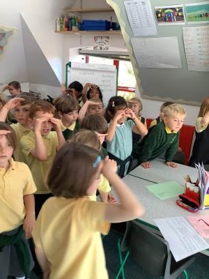 In Music we began our new topic ‘Man on the Moon’. We played a fun game where we chanted a rhyme whilst tapping a steady beat. We then explored different vocal timbres by making up funny voices for the aliens - some were high, some low, some squeaky.
