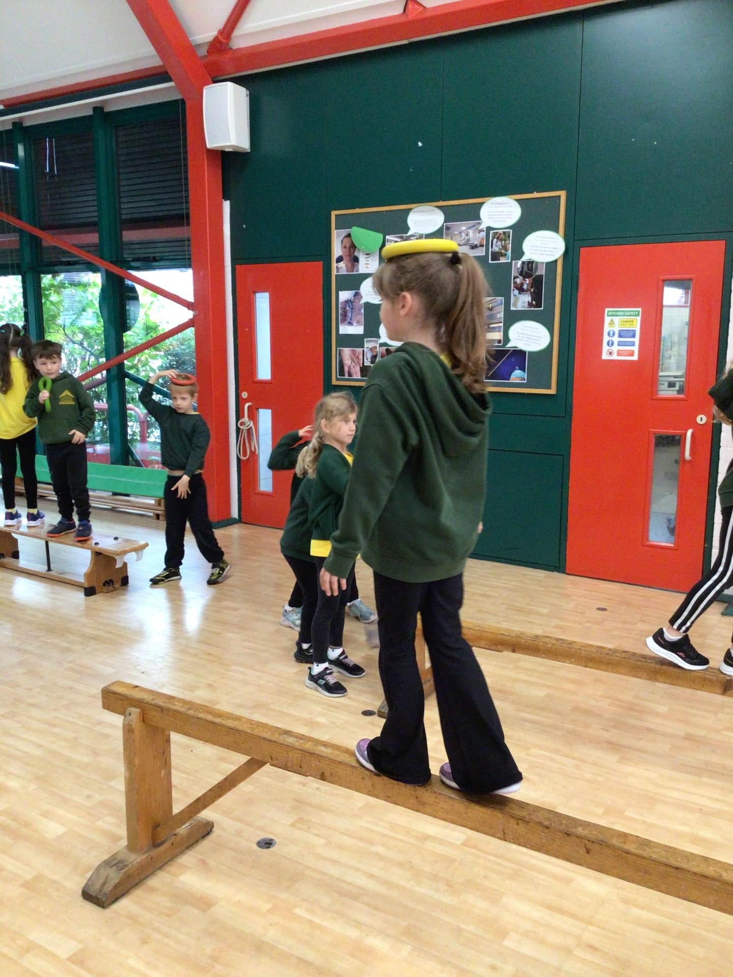 In P.E. we continued to learn about balance. We challenged ourselves to walk along the line backwards and forwards. We found walking backwards quite tricky.