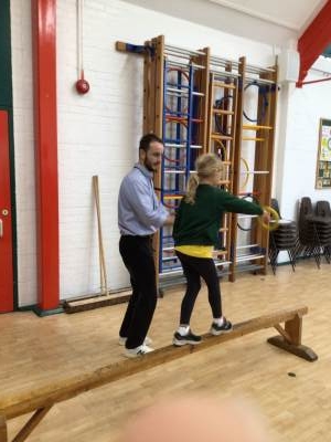 In P.E. we carried on practicing jumping, balancing and gymnastics.
