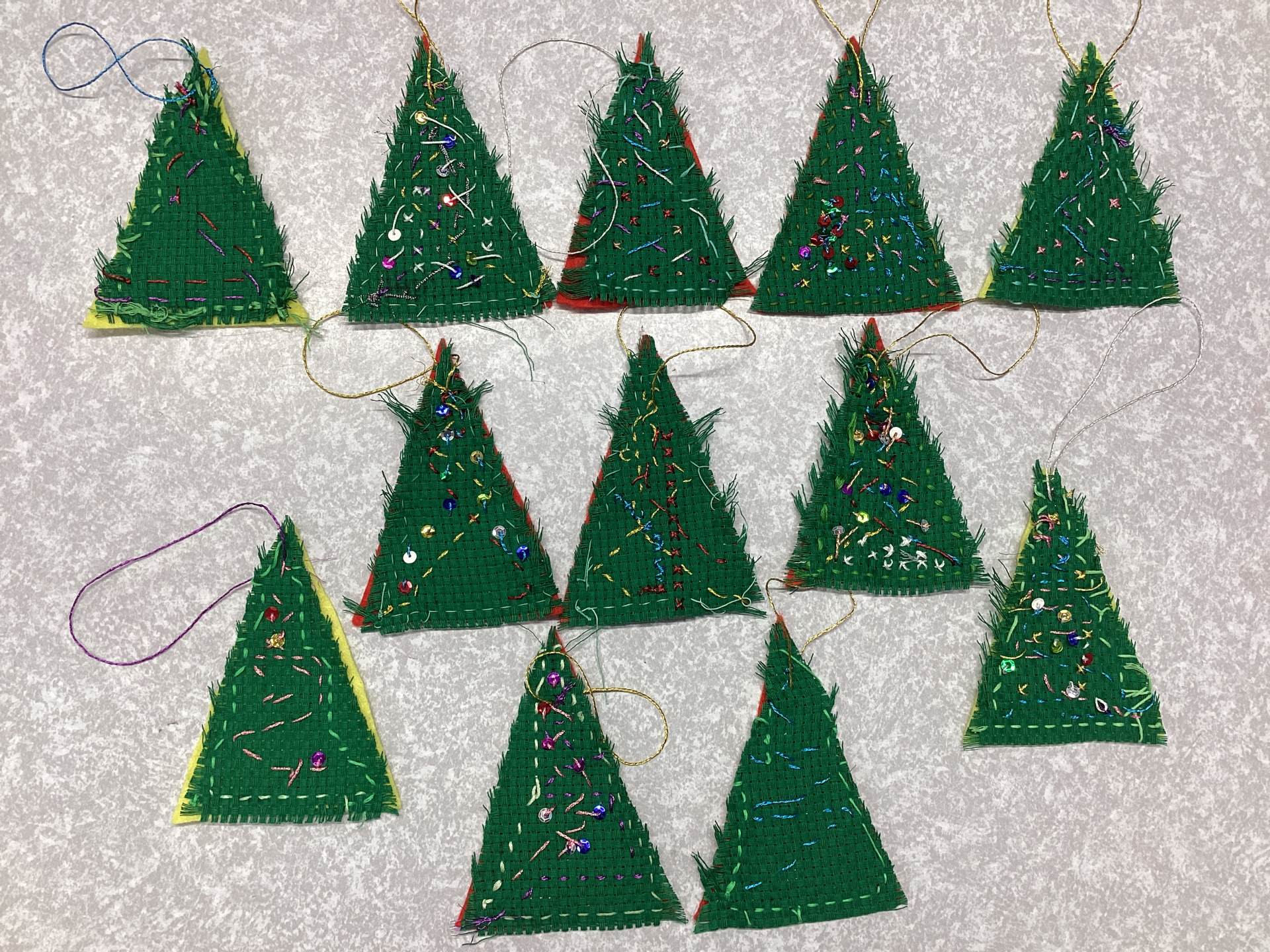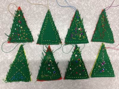 And finally, Mrs Parsons would like to share the Christmas tree decorations her Sewing Club produced this half term. She is incredibly proud of all the children. They all showed resilience throughout because sewing can be quite tricky. She hopes the decorations will be proudly hanging on your Christmas trees for many, many years.