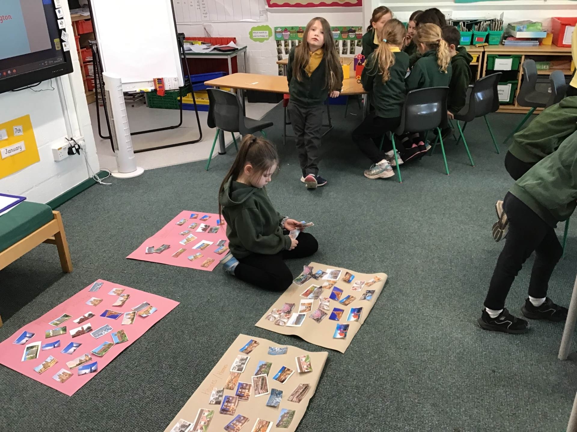In geography we learned that towns and cities all over the world have things like houses, shops, schools and churches, and we sorted pictures to spot similarities and differences before finding some of the places on a map.