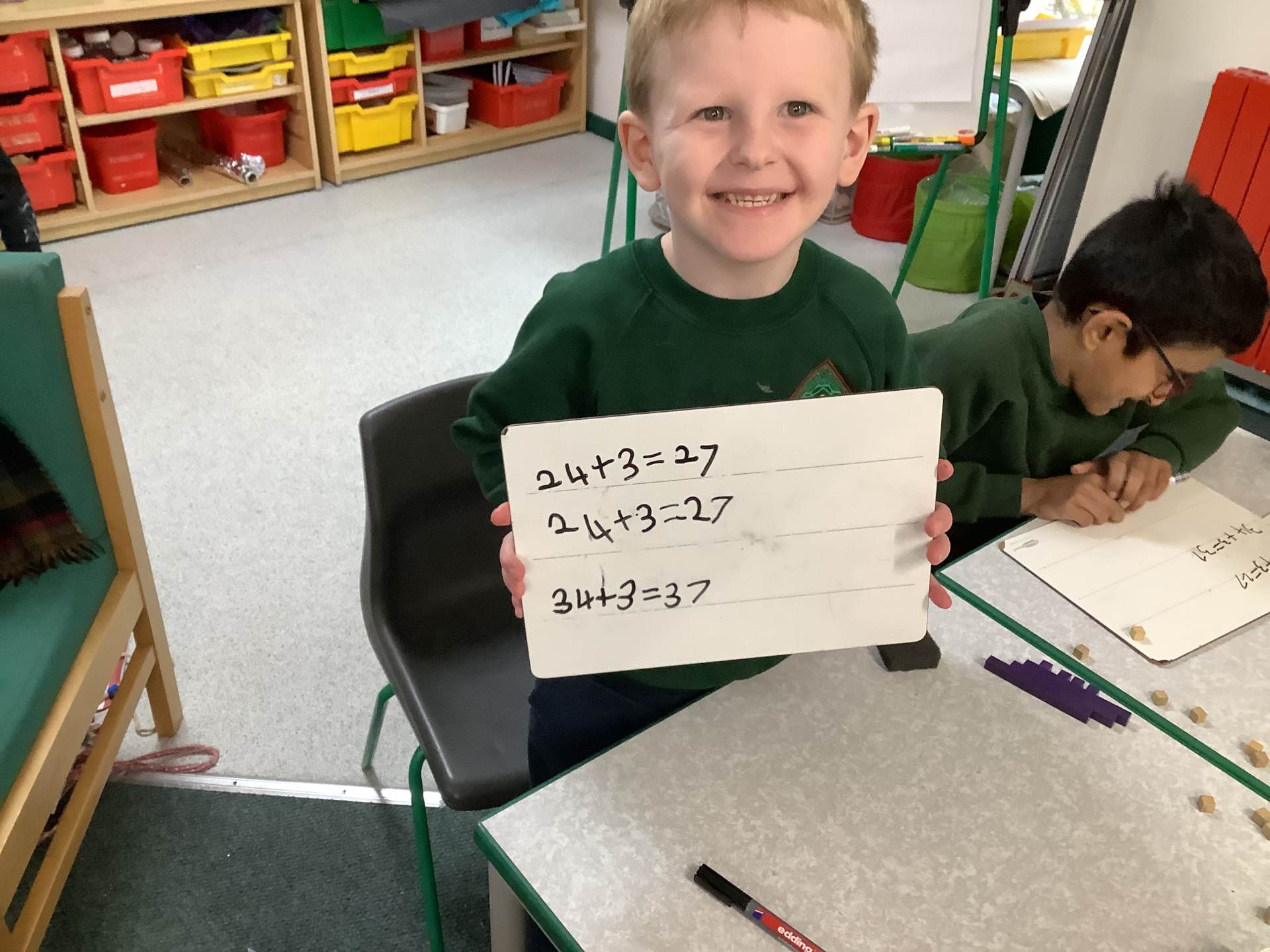 In Maths we have been adding and subtracting one ten from a 2-digit number, adding and subtracting a multiple of ten to a 2-digit number and partitioning tens and ones in different ways.