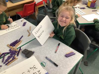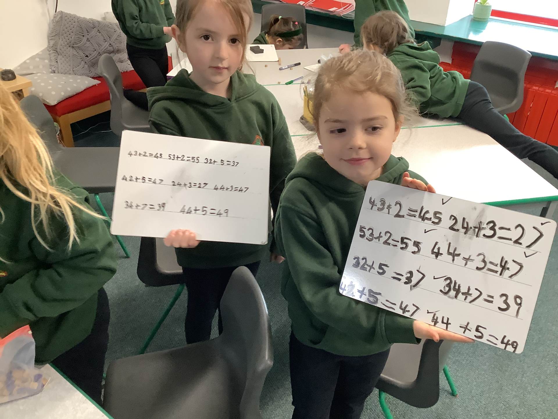 In Maths we have been partitioning 2 digit numbers and adding and subtracting using dienes to support our thinking.