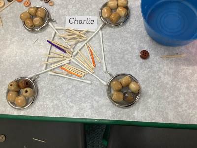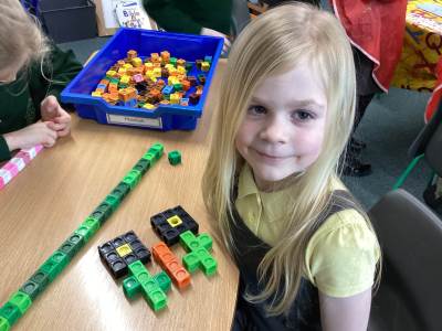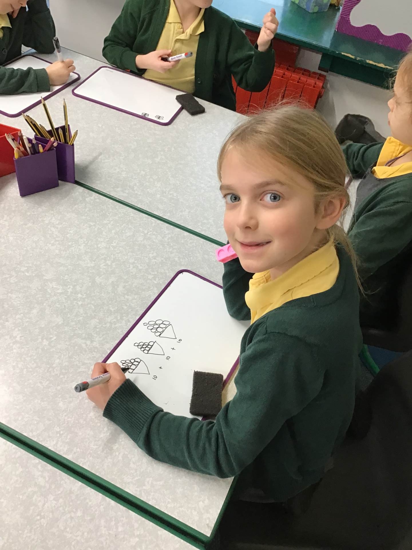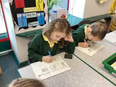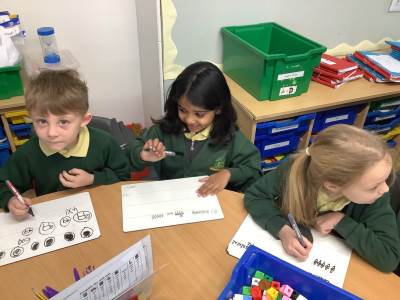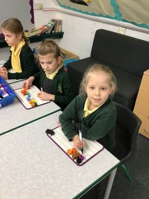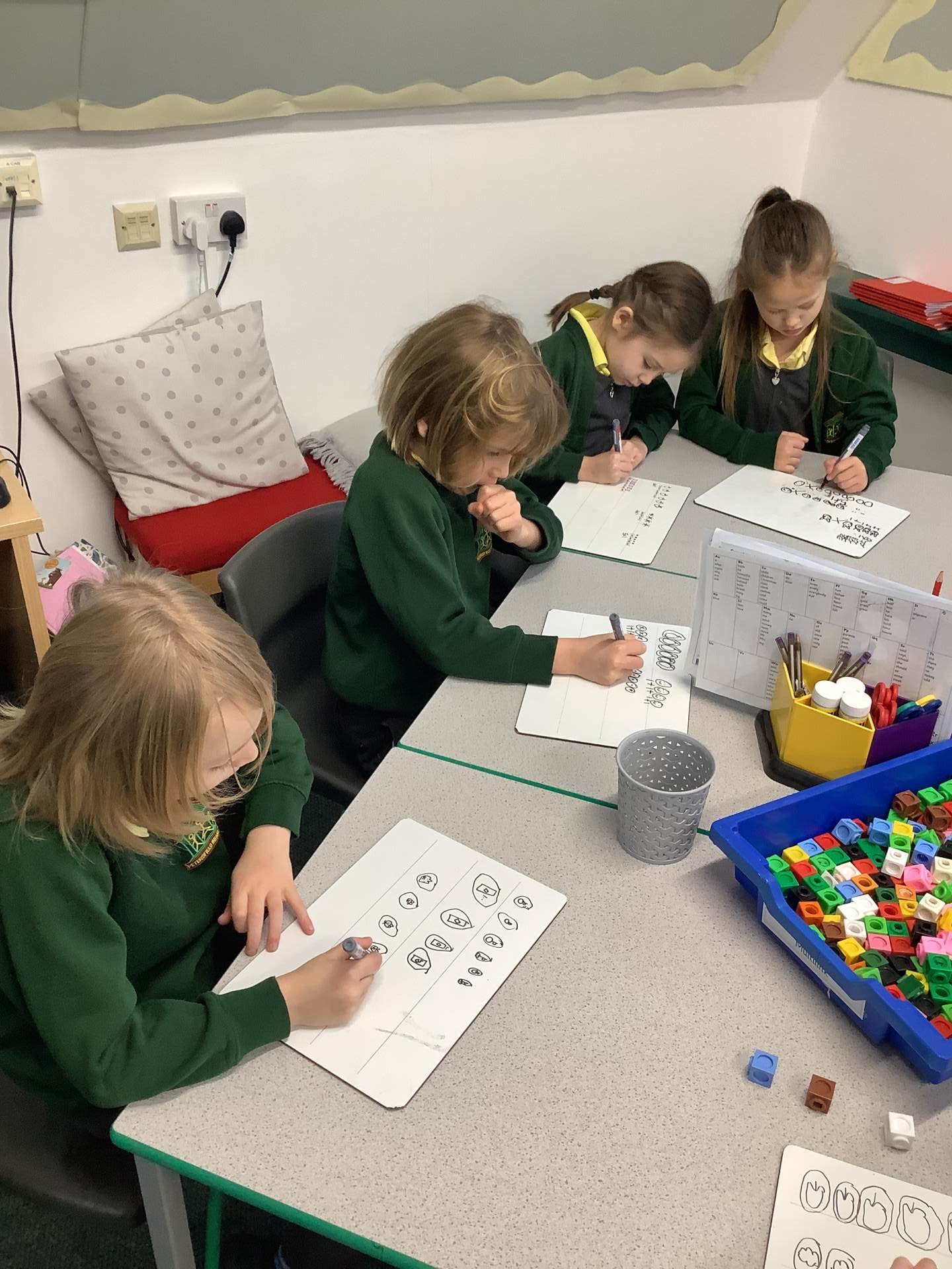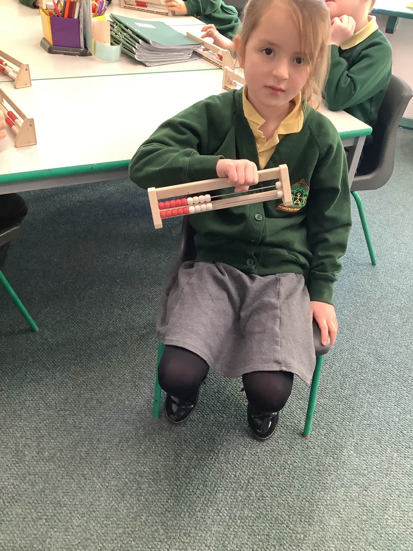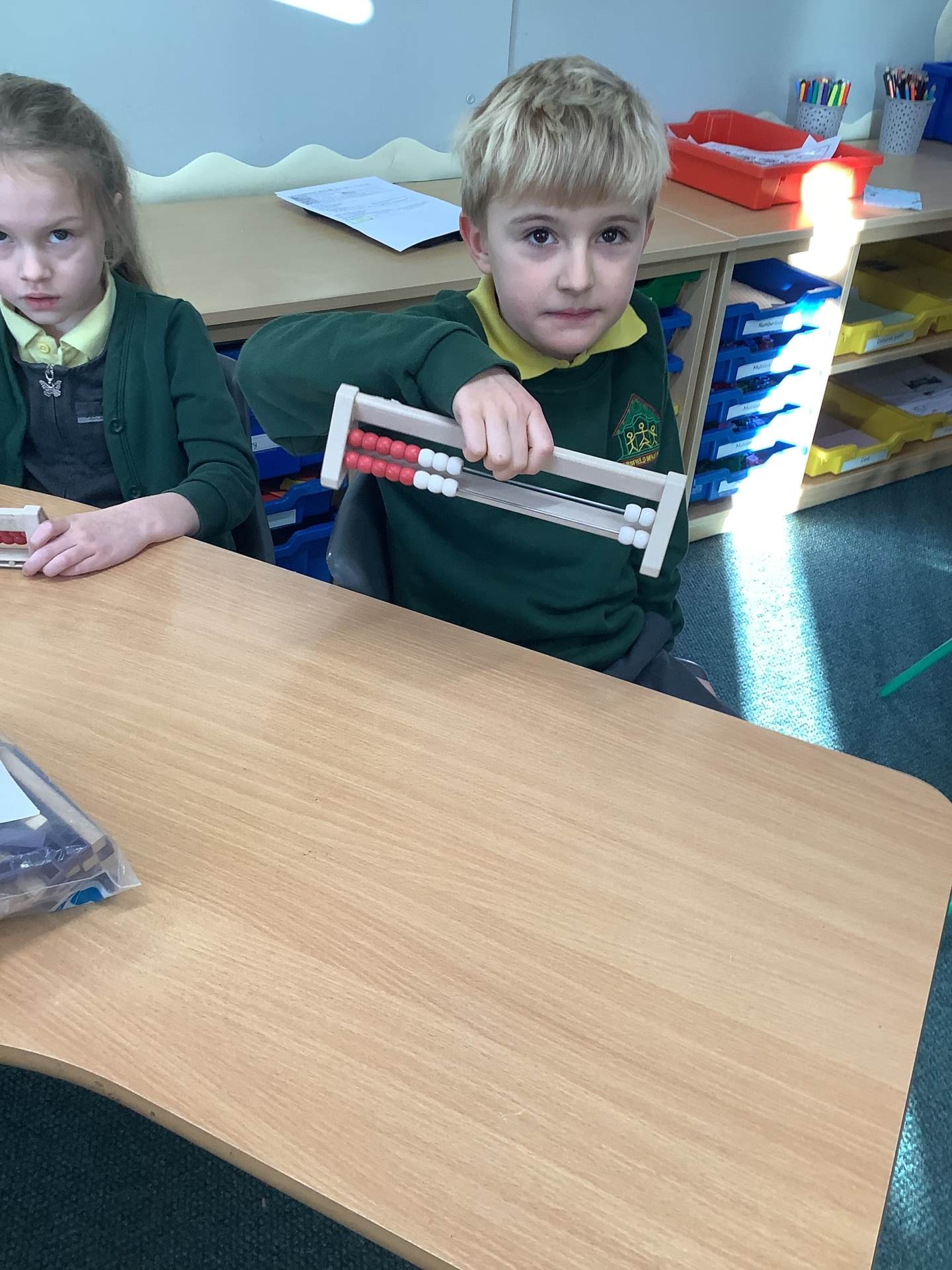 In Maths we have been learning to use our number facts to help us with addition and subtraction of a 1-digit number from a 2-digit number. We have also been using our Rekenreks during Mastering Number to make numbers up to 20 ensuring that we fill our top row first making it easier for us to subitise these numbers as opposed to counting them.