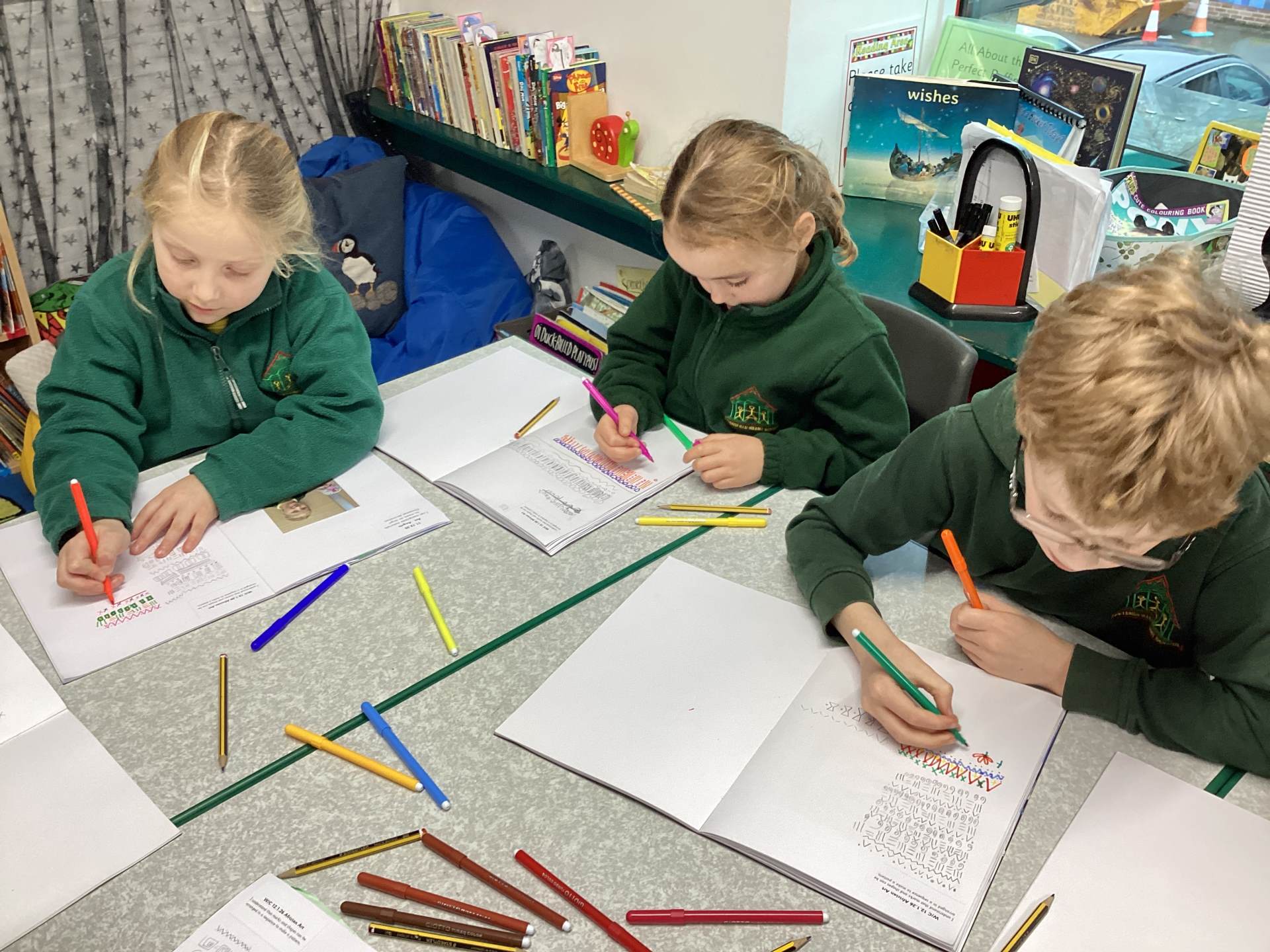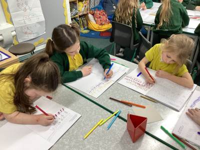 This week was Children’s Mental Health week. We started the week by thinking about the word ‘belonging’ and what it means to us. We created a class display which we then put in the Year 2 area to show that we belong not just in our class, but in Year 2 too. Throughout the week we had some mindful moments, like Cosmic Yoga, mindful colouring whilst listening to calm music and even having time in the library to sit and quietly enjoy a book. We finished the week by wearing our scarf to school.
