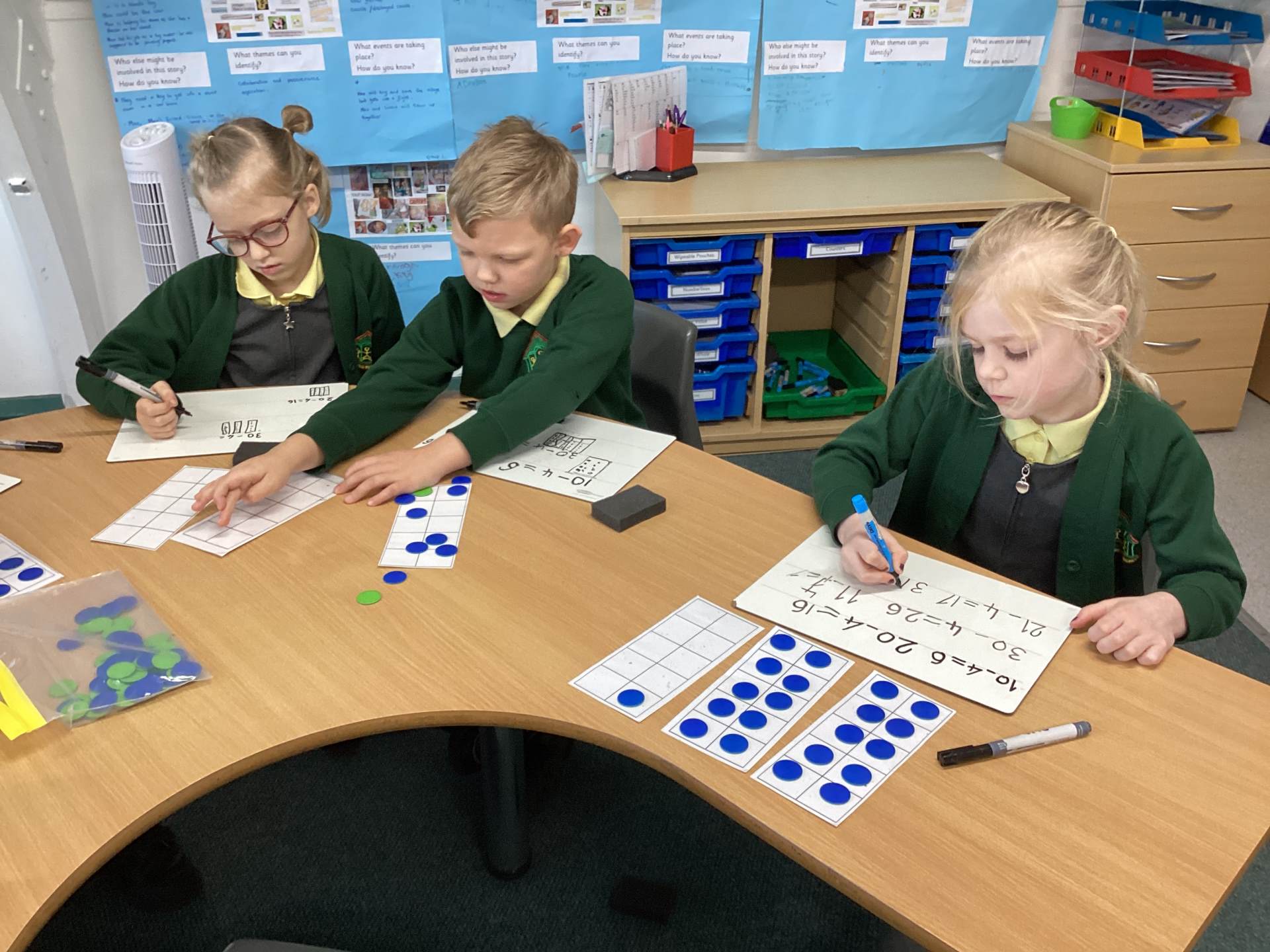 In maths this week we have been using our number bond knowledge to help us add and subtract two-digit numbers, making ‘cheeky tens’ with tens frames, spotting patterns when bridging over ten, and even exploring ten more and ten less using a hundred square.