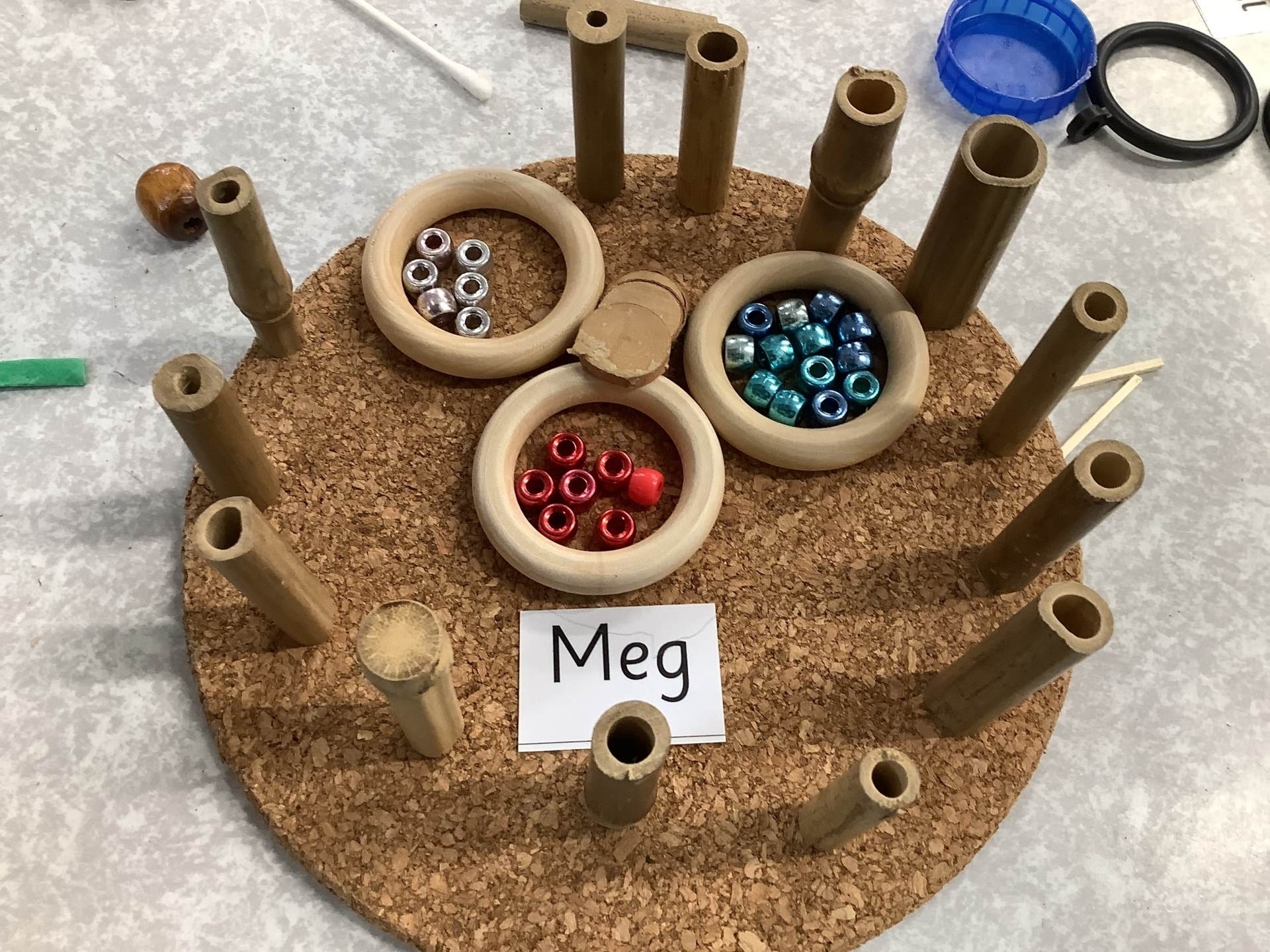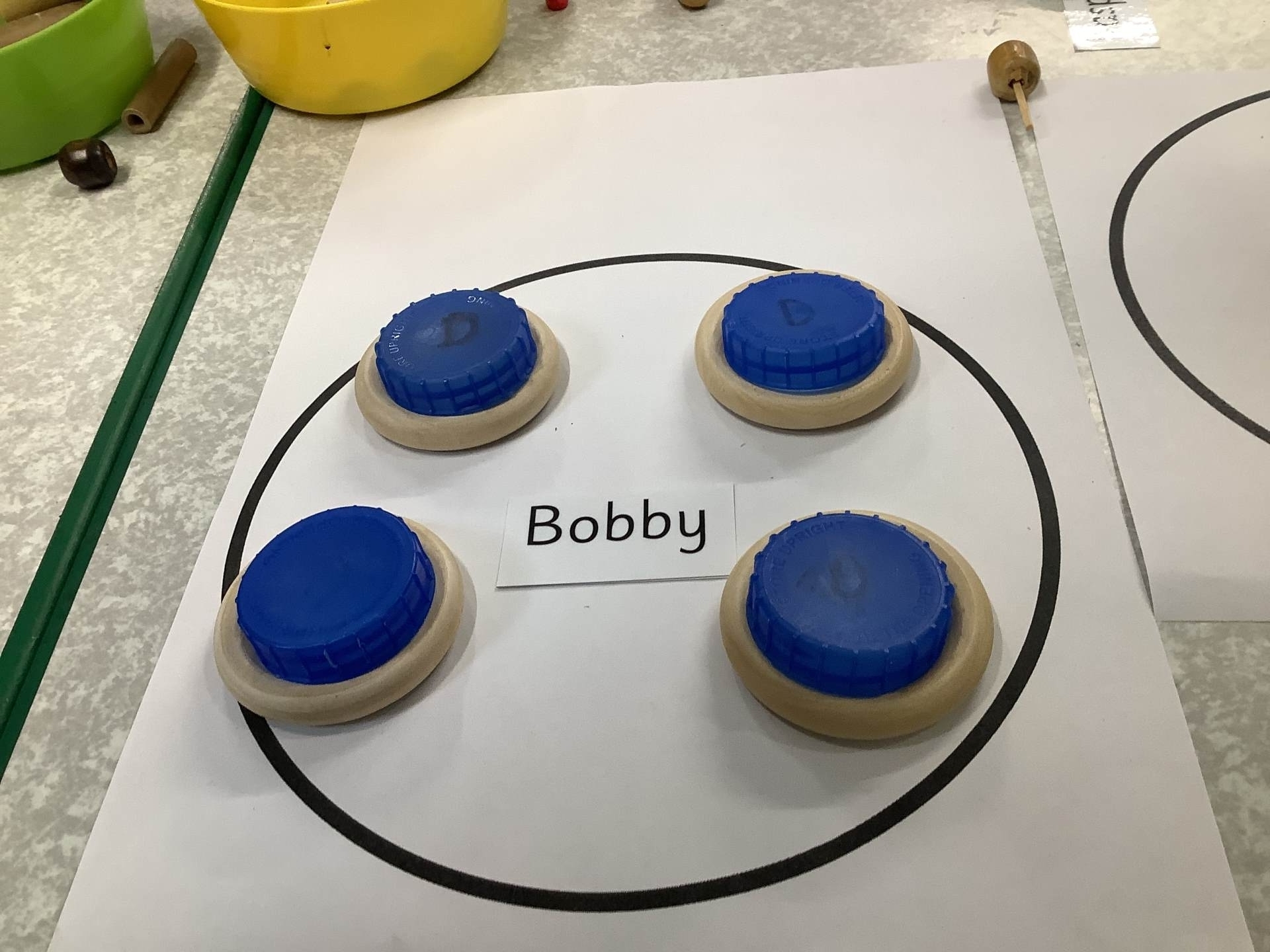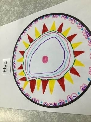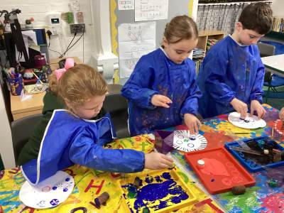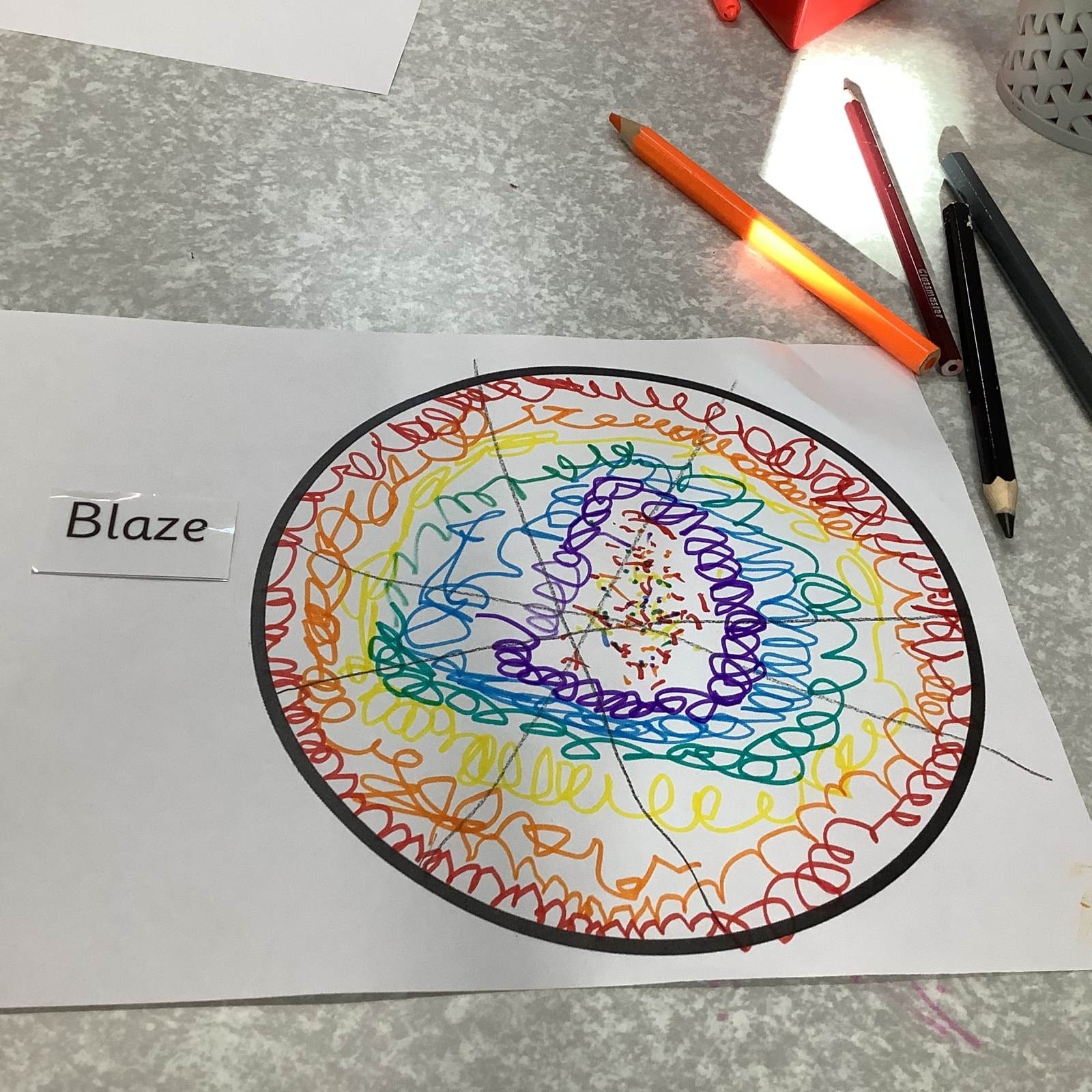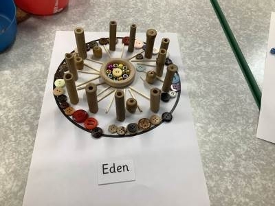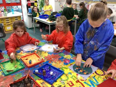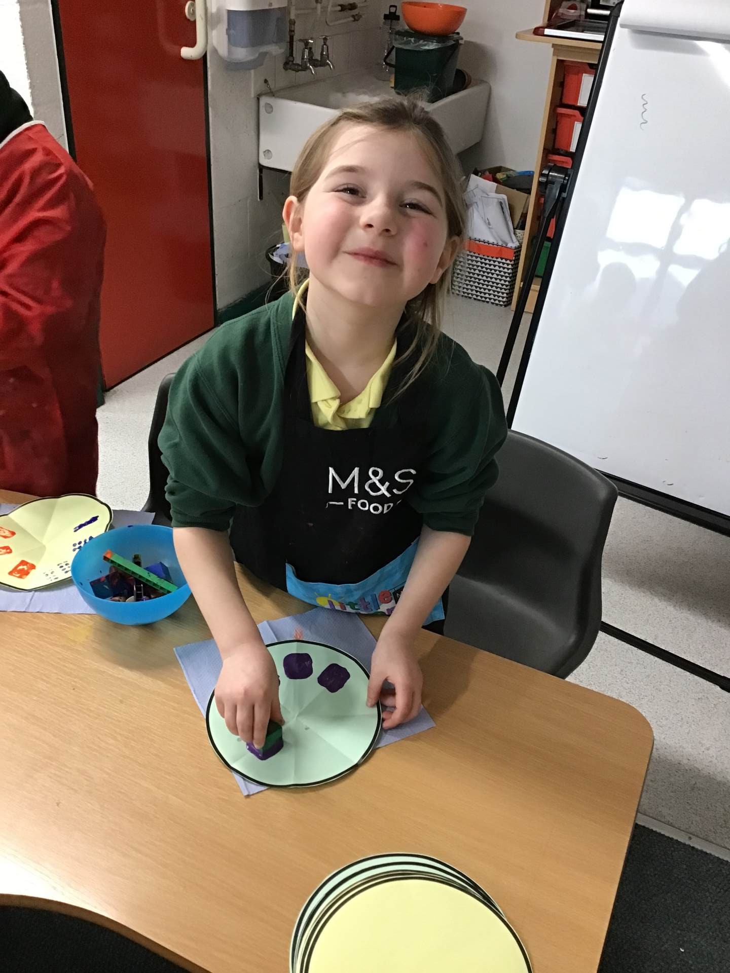 In Art this week we have been using paint and free moving objects to create patterns on circular paper.