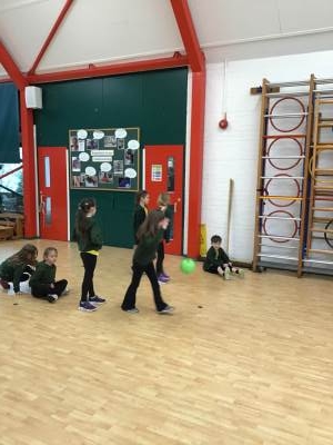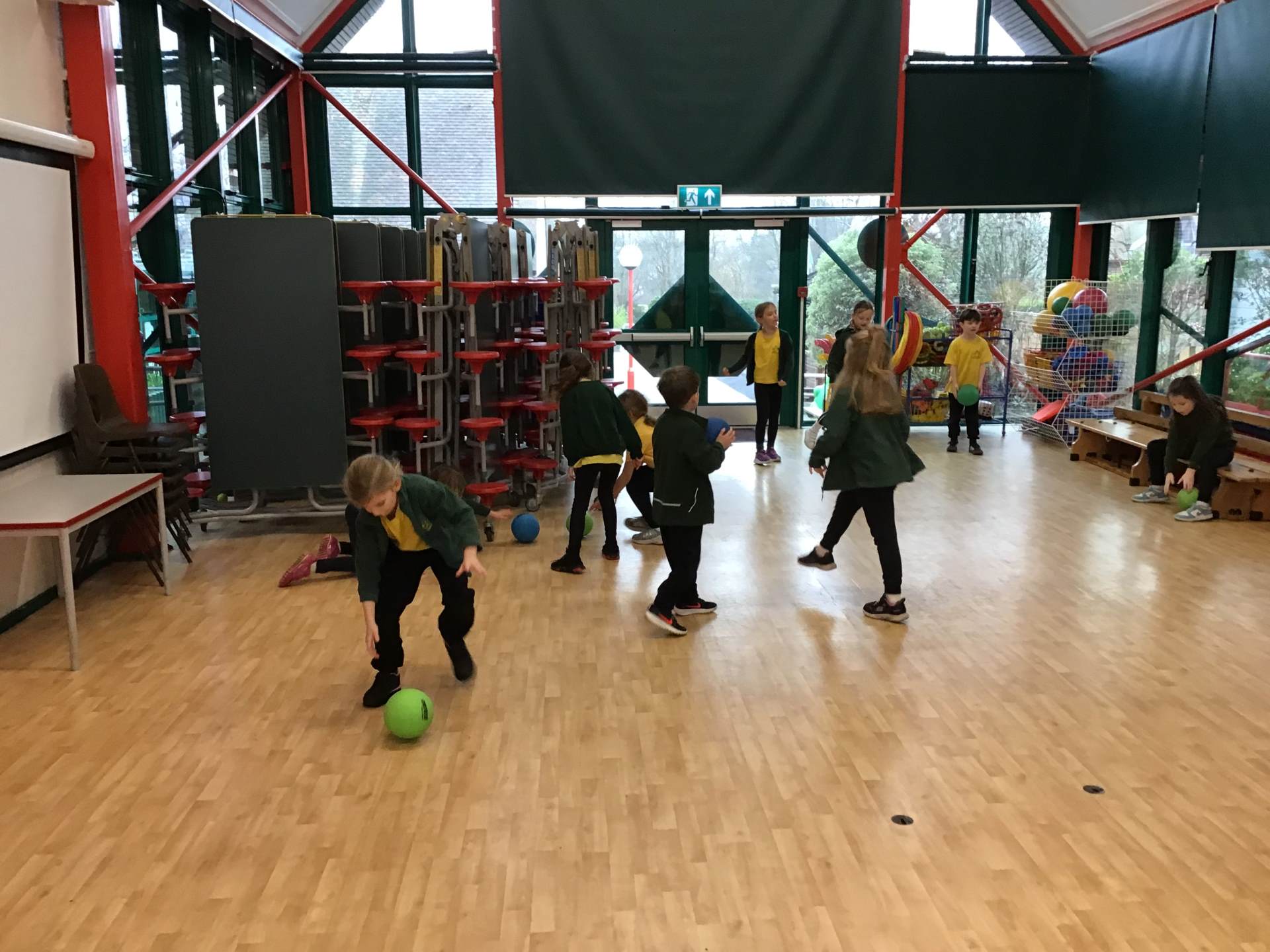 In PE we practiced our ball skills. We needed to maintain control of the ball at all times (which was tricky for some of us!) whilst moving the ball in different directions. Our movements needed to be smooth and fluent.