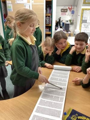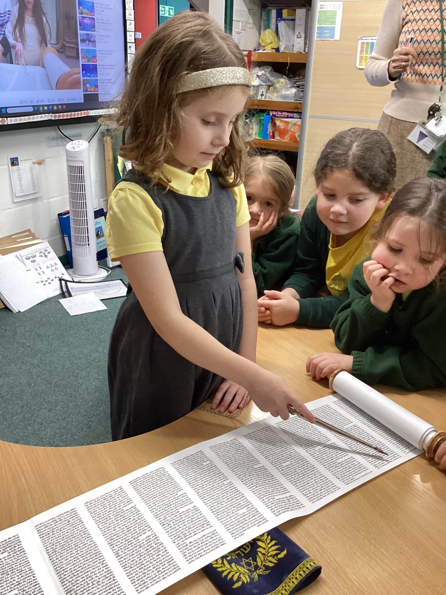 In RE we have been learning why the Torah Scroll is special to Jews. We even looked at a real one. We were very respectful and didn't touch it.