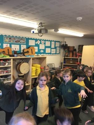 In Music we went to space! We learnt a new song about going to the Moon and we put our space suits on and pretended that we were there!