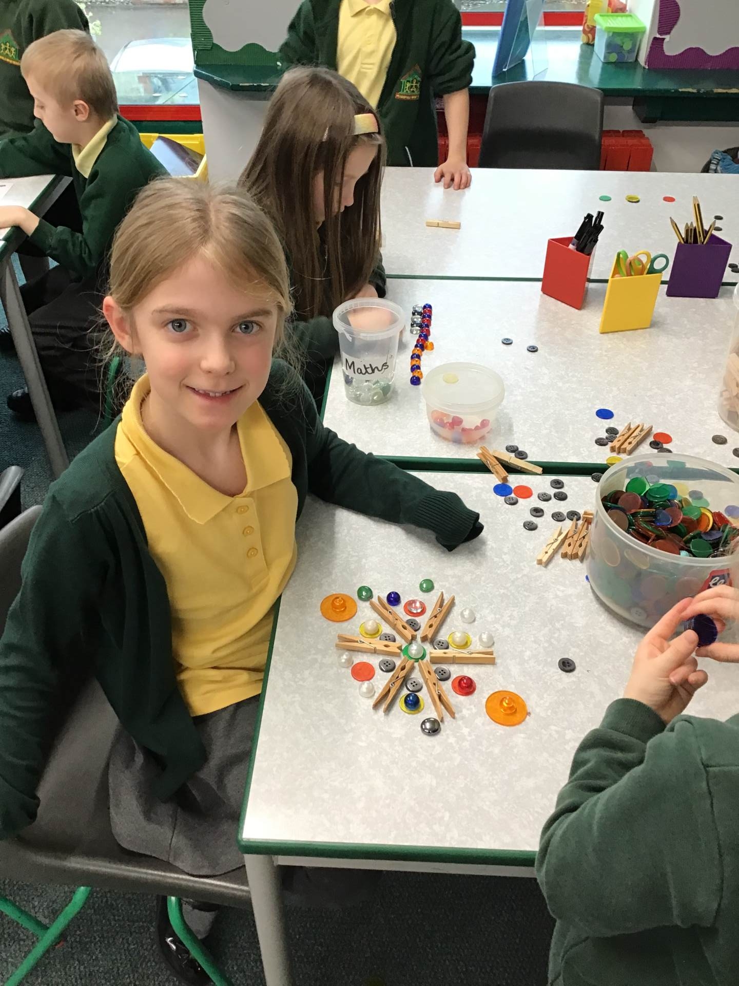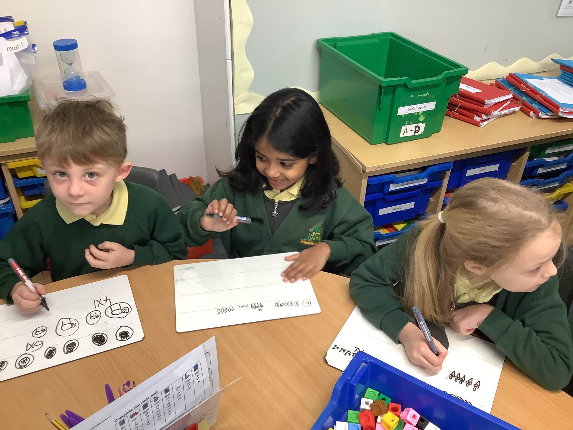 We were all very excited to start multiplication this week! We’ve learnt that multiplication is repeated addition and the X symbol means ‘groups of’. We have had fun making equal groups of things and then writing the multiplication expression. We’ve even used Cuisenaire rods to make number trains.