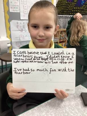 We have started a new leaning journey in English. We became detectives trying to find out what the new story might be about. We thought about what clues the words / phrases we’d been provided were giving us eg. We thought that it must be set in a cold place because we spotted words like snowflake, ice and wind. We later found out the book is called Big Bear, Little Brother.