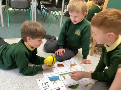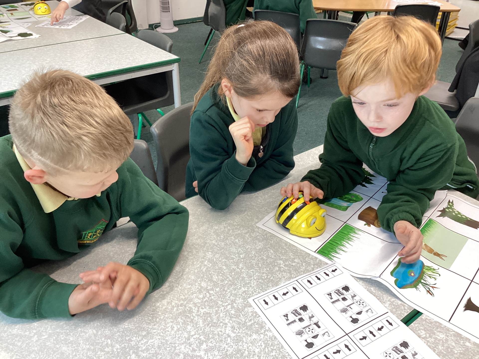In Computing we have been continuing to explore our Robot Algorithms by making predictions using a ‘paper bot’ Beebot to map out the route that we think it will take. We used maps to enable us to follow a step-by-step program and identify what the outcome will be. We then used the real Beebots to test to see that our predictions were right or not.