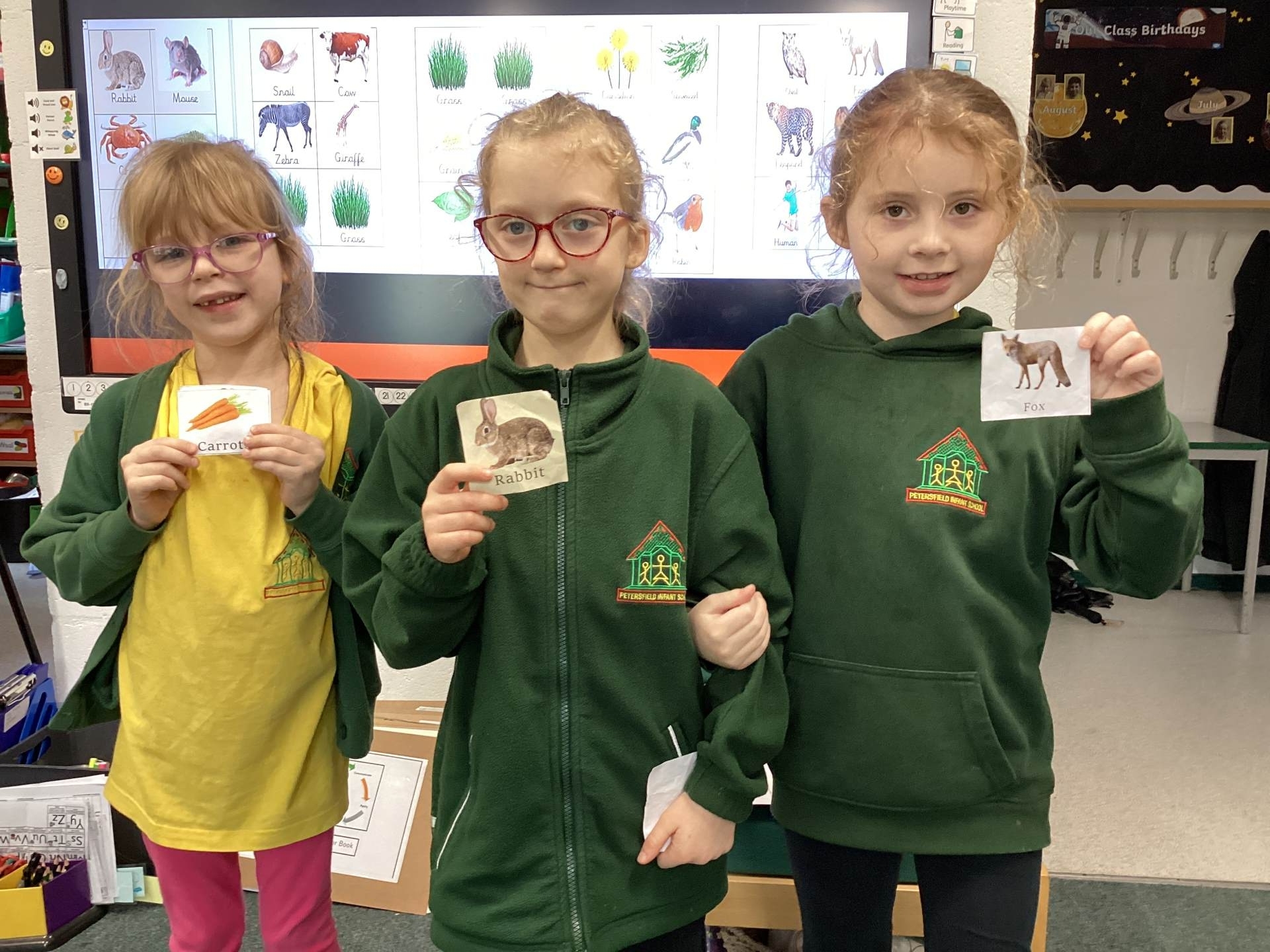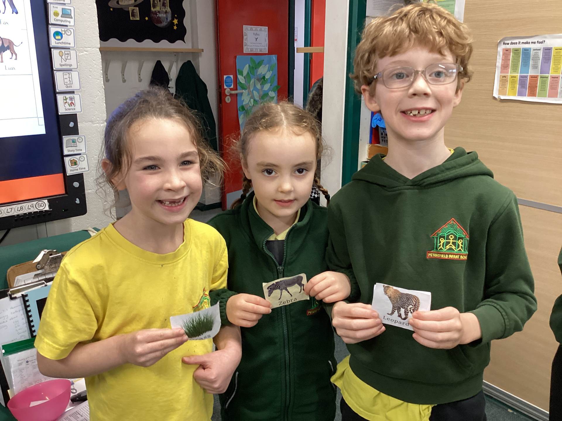 We have been learning about food chains in Science. We played a game where we had to match food to the animals to create a small food chain. We had fun and realised that many animals eat the same thing.