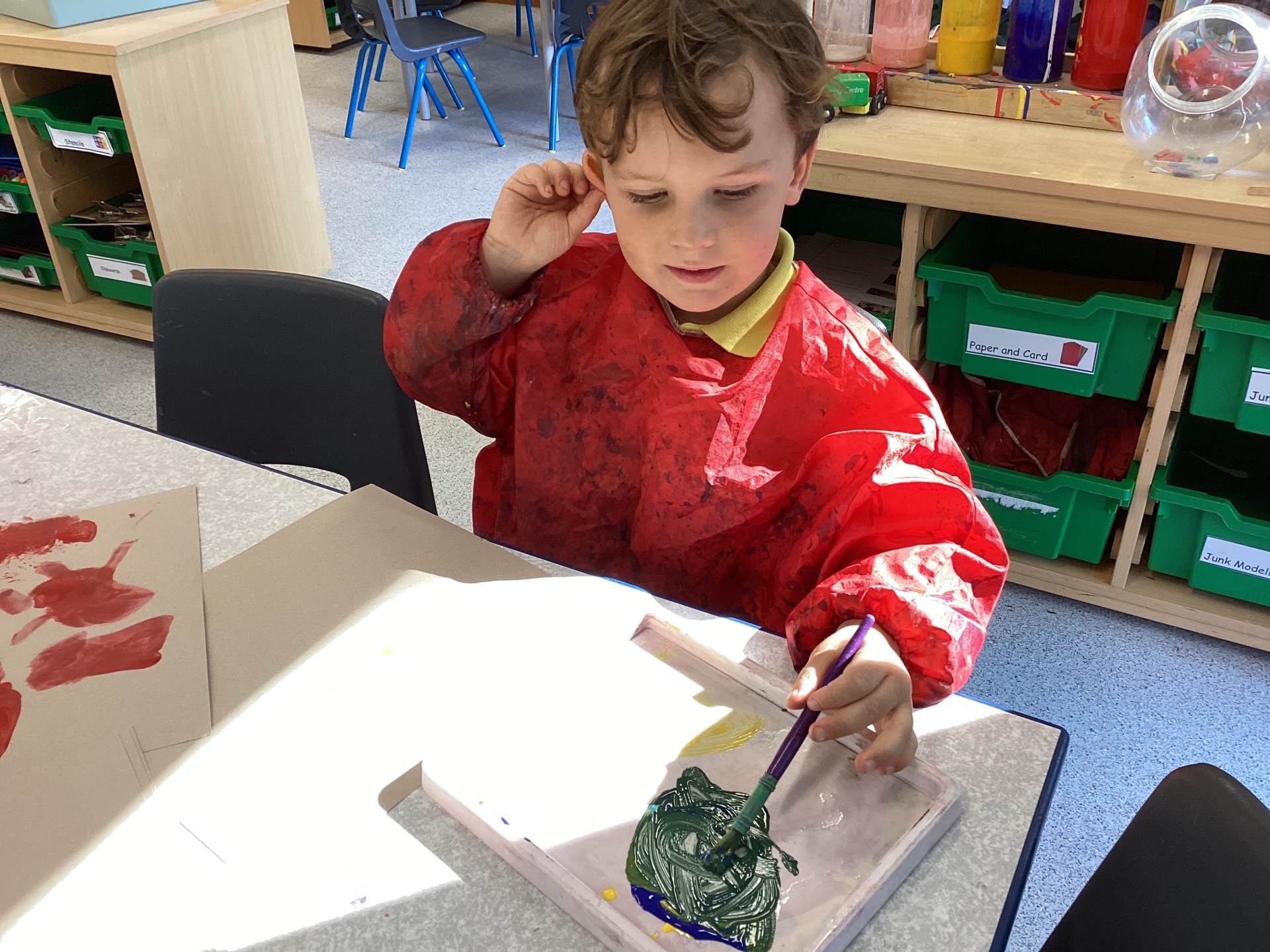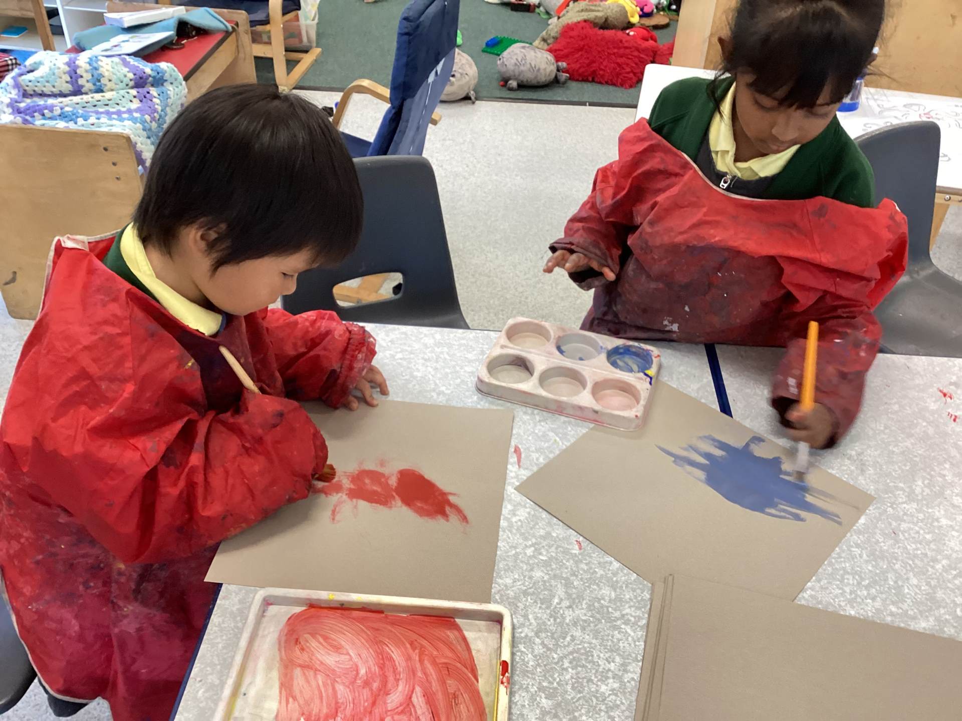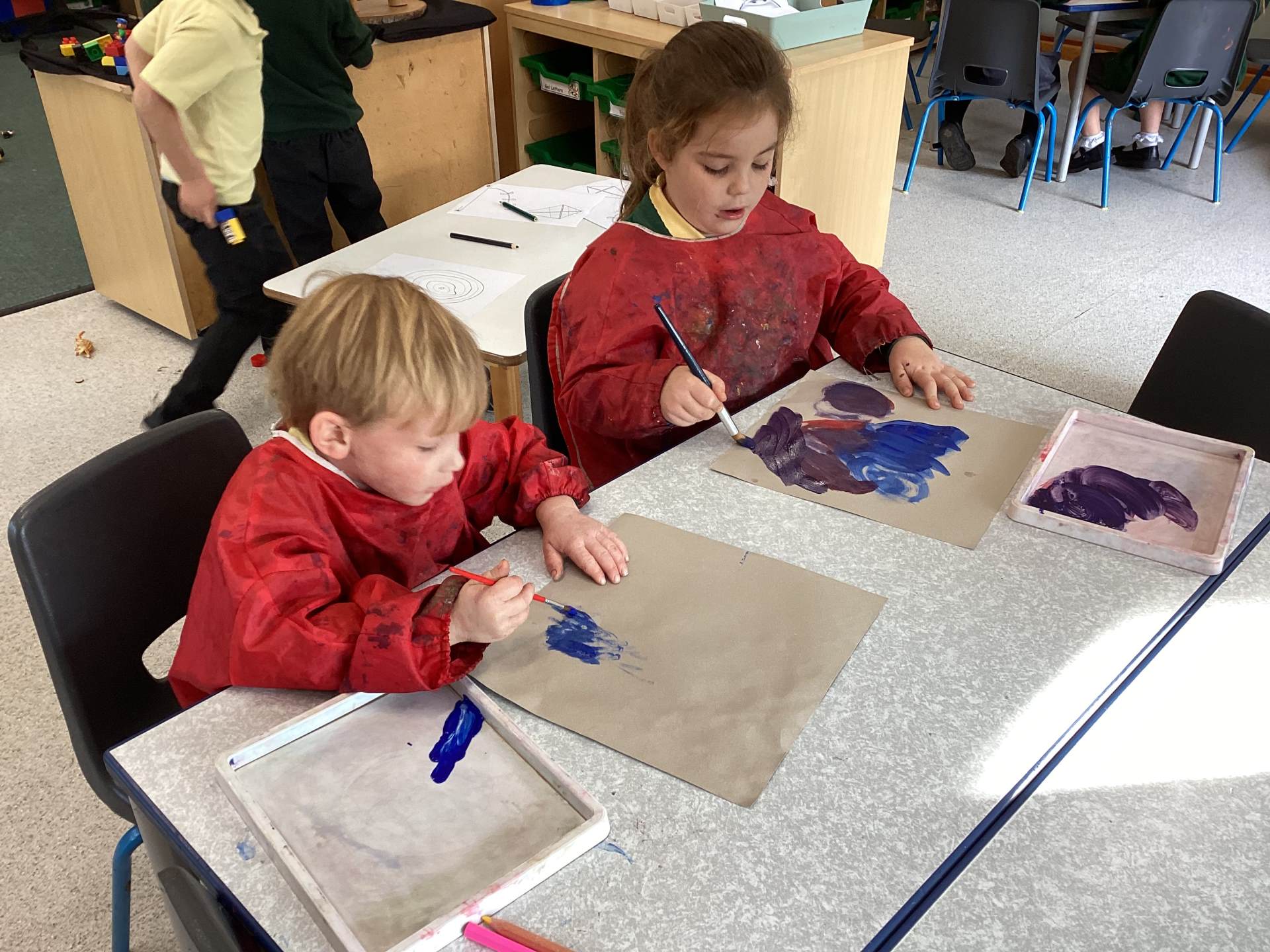 While painting, we have been developing our independence by helping each other and cleaning up afterwards.