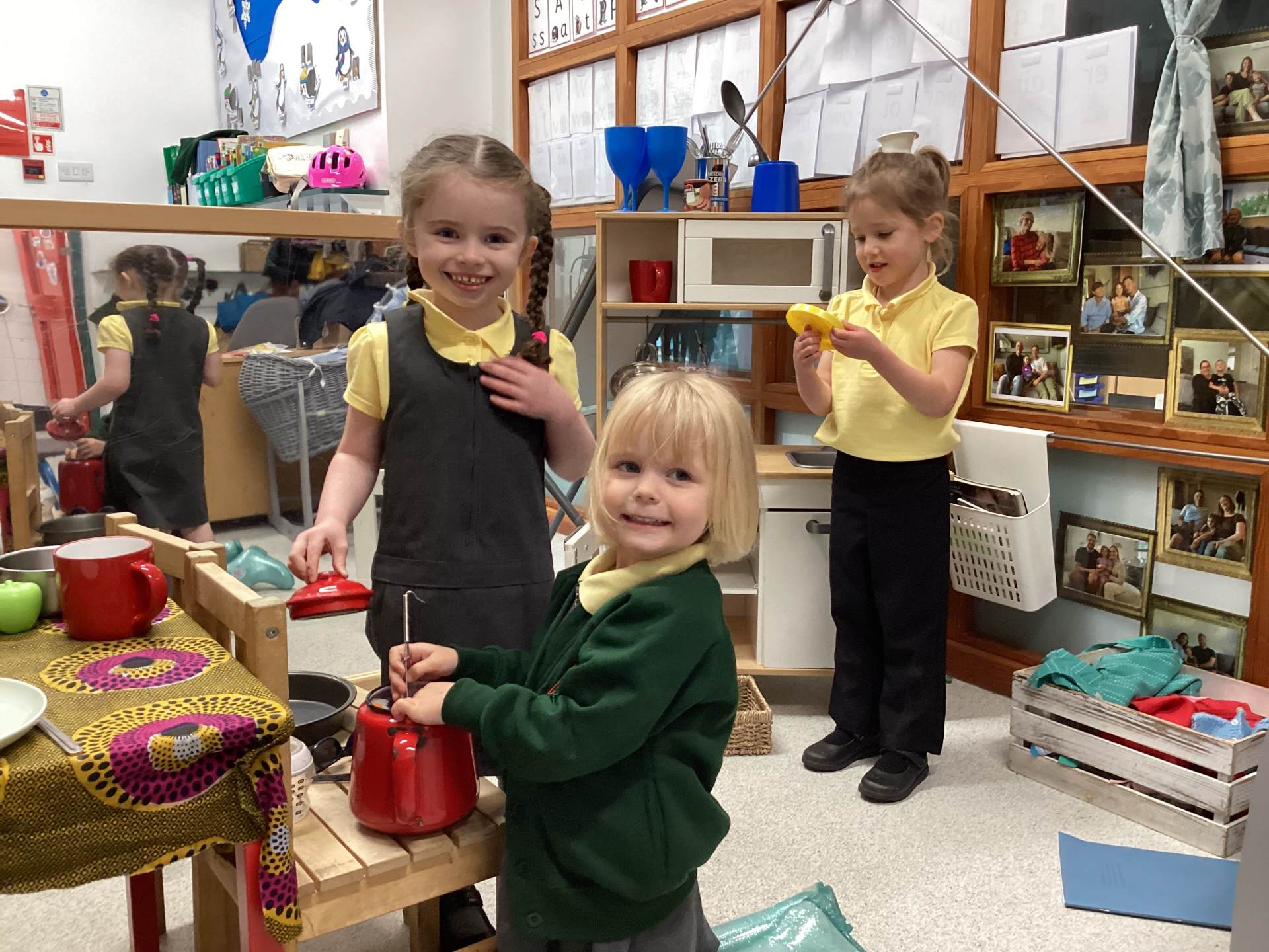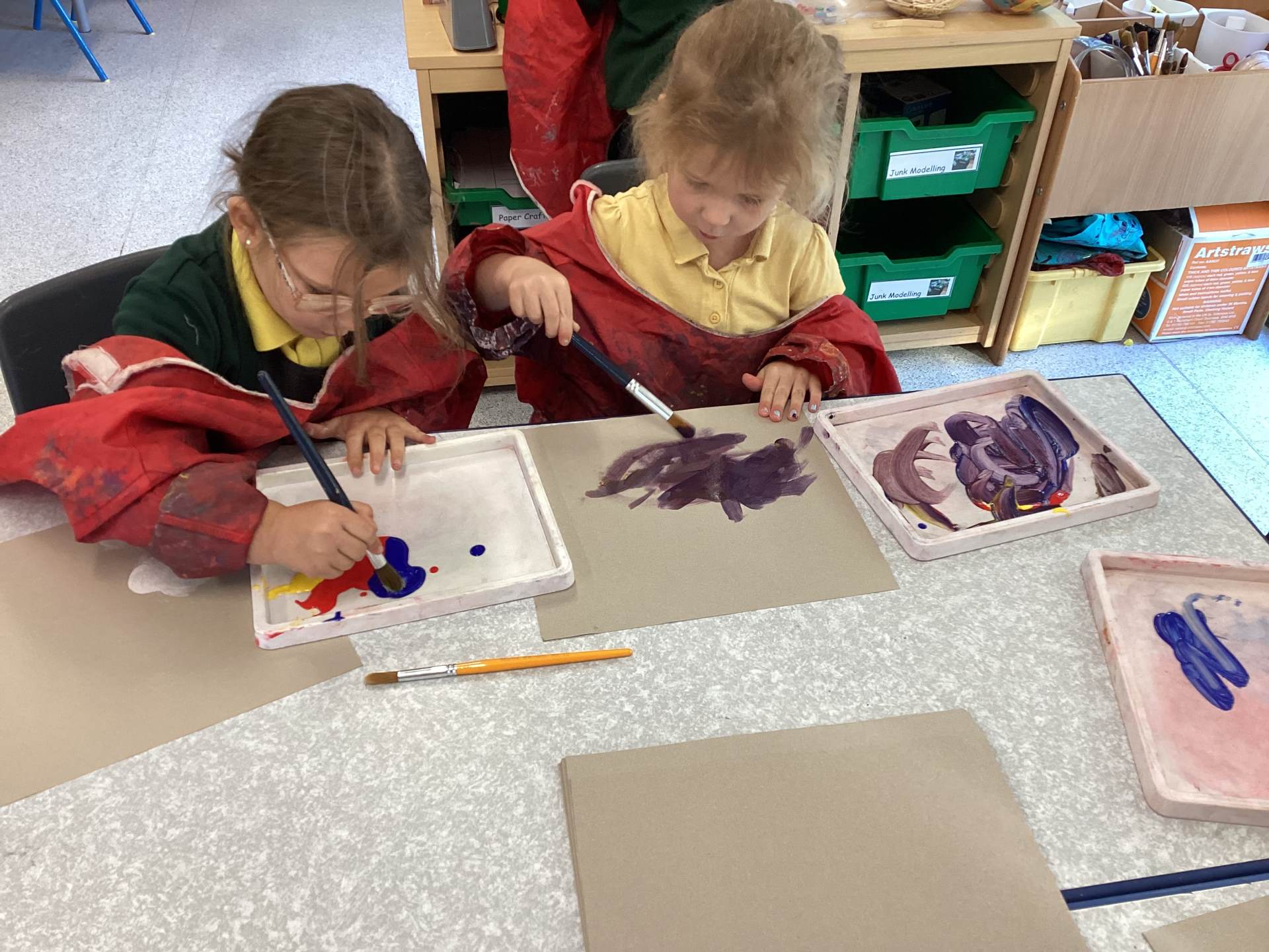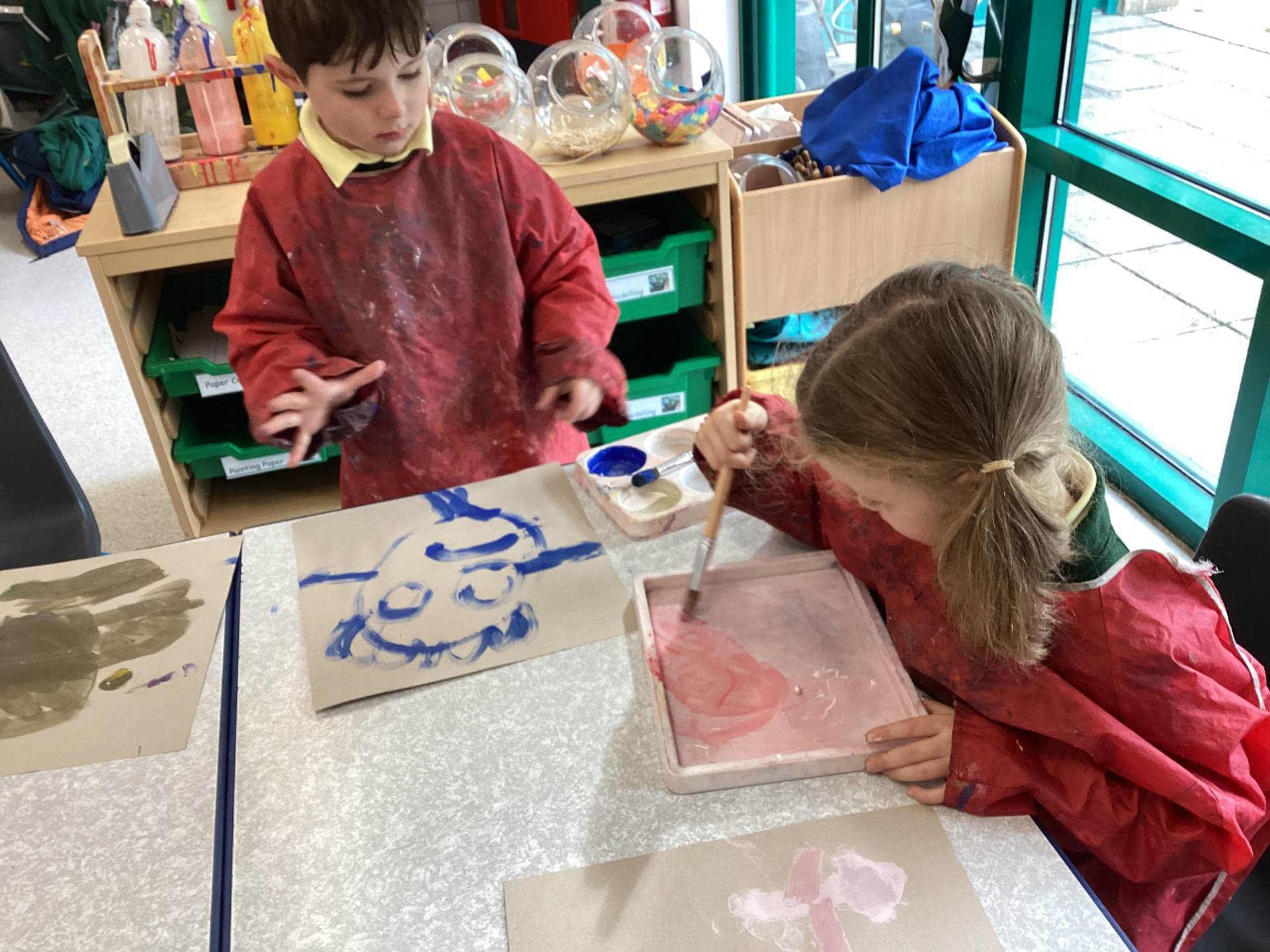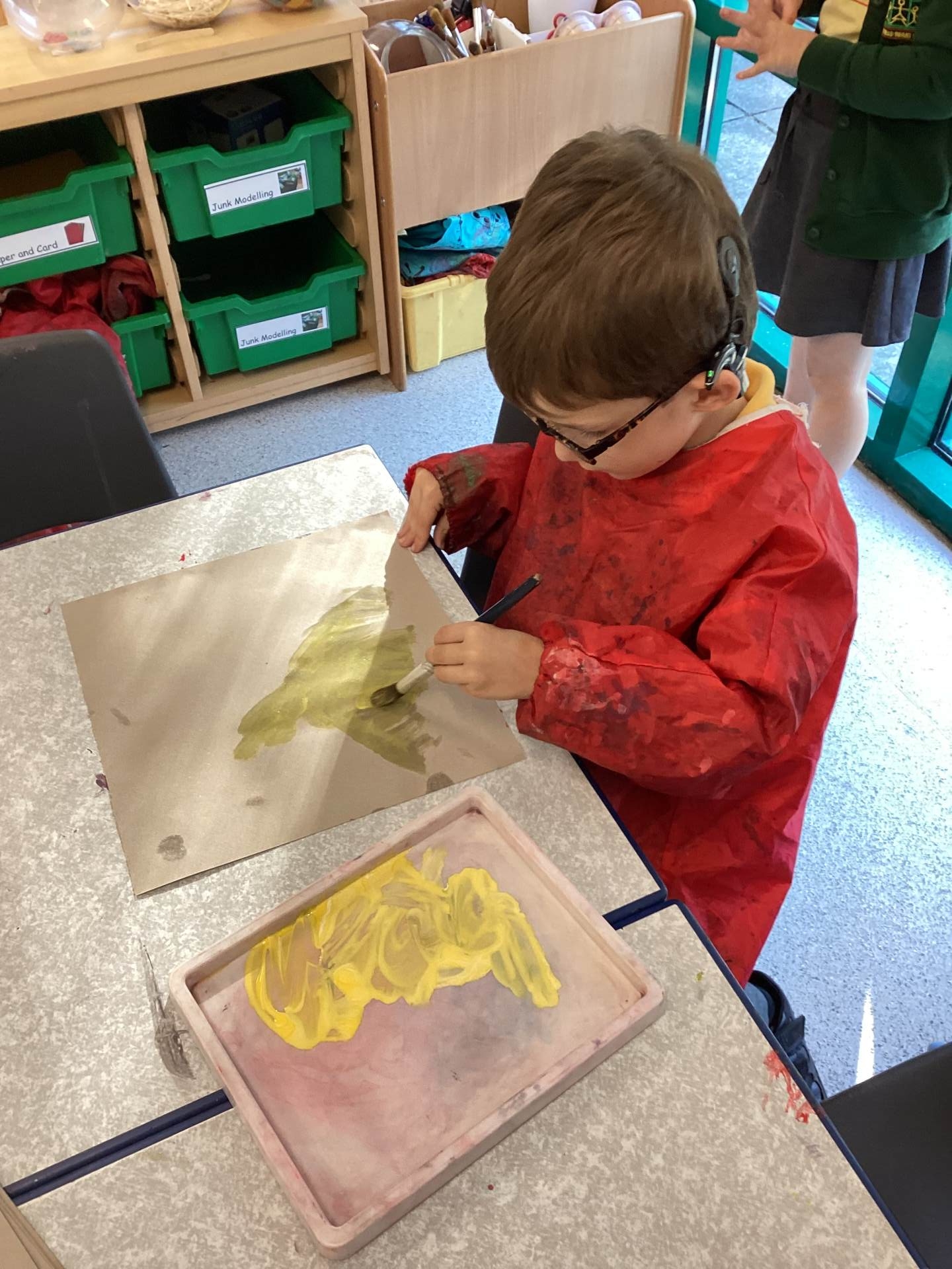 While painting, we have been developing our independence by helping each other and cleaning up afterwards.