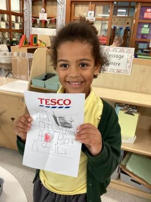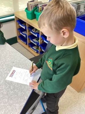 We have been busy in the home corner and had a go at writing our own shopping lists. We listened out for any phonemes we could hear. Then we pretended to go shopping with our lists!