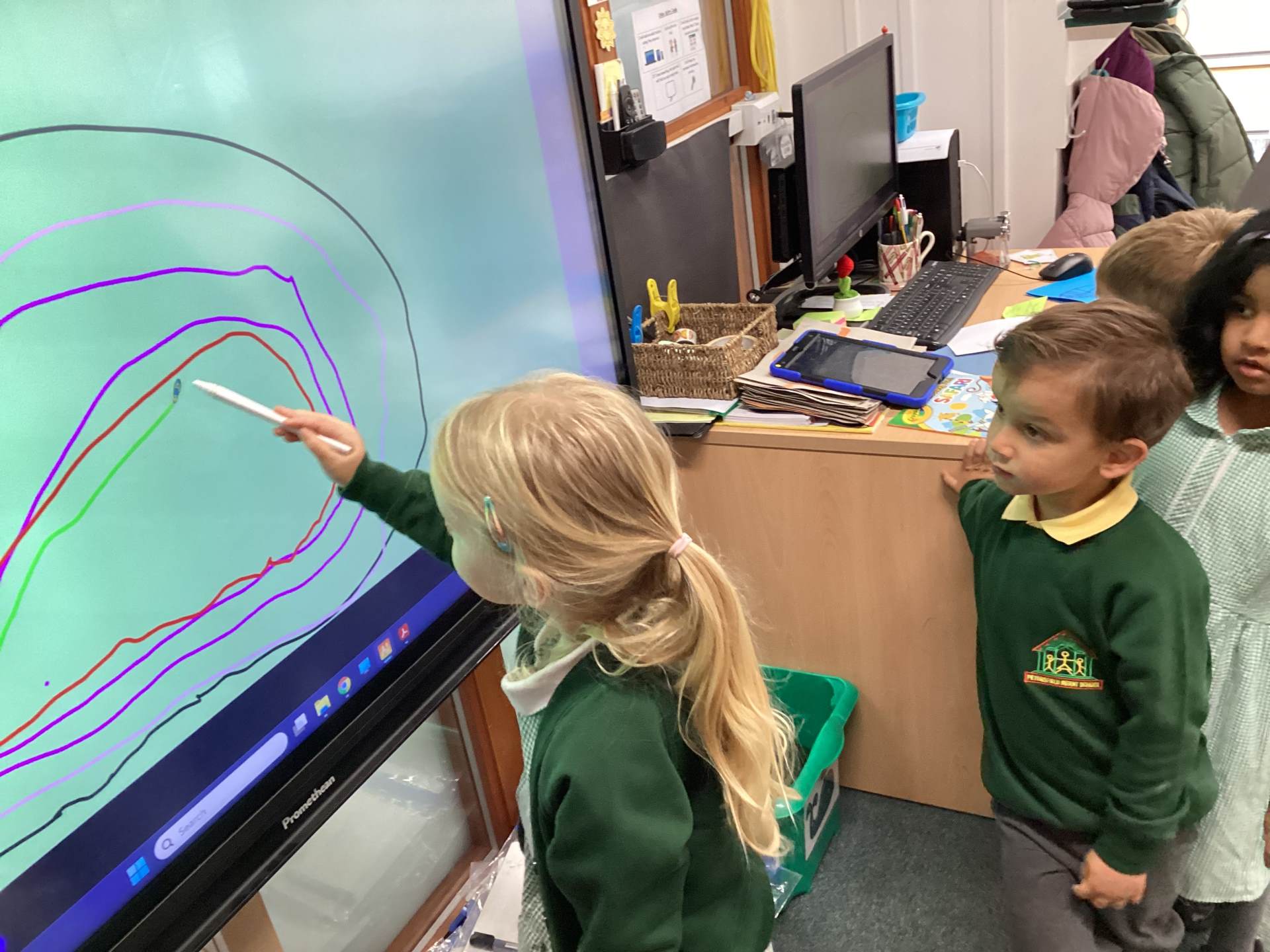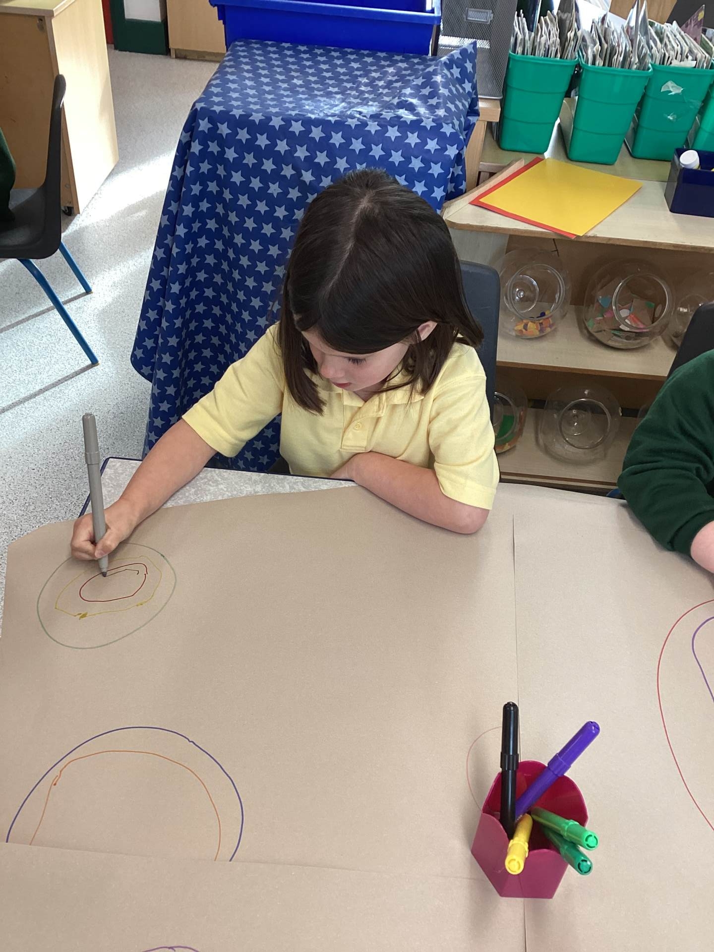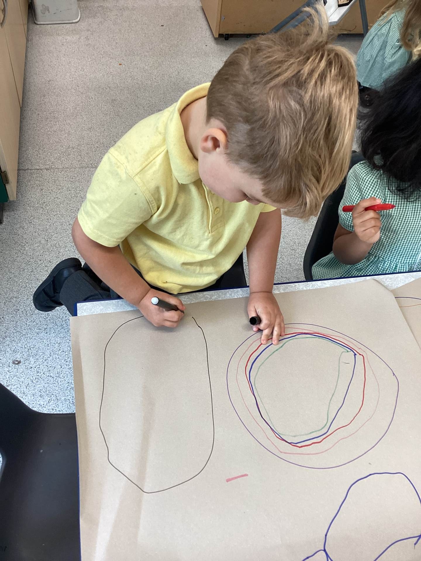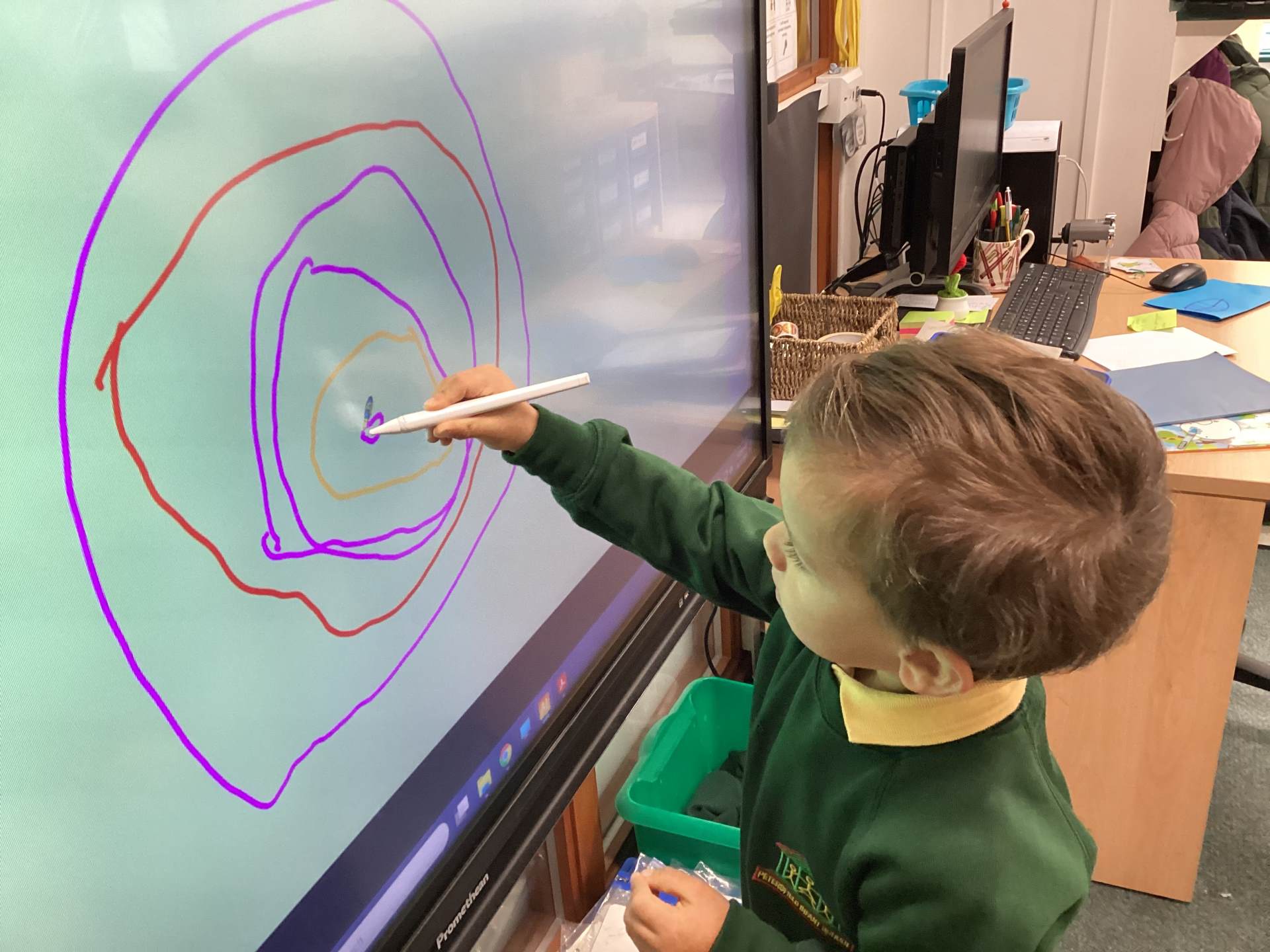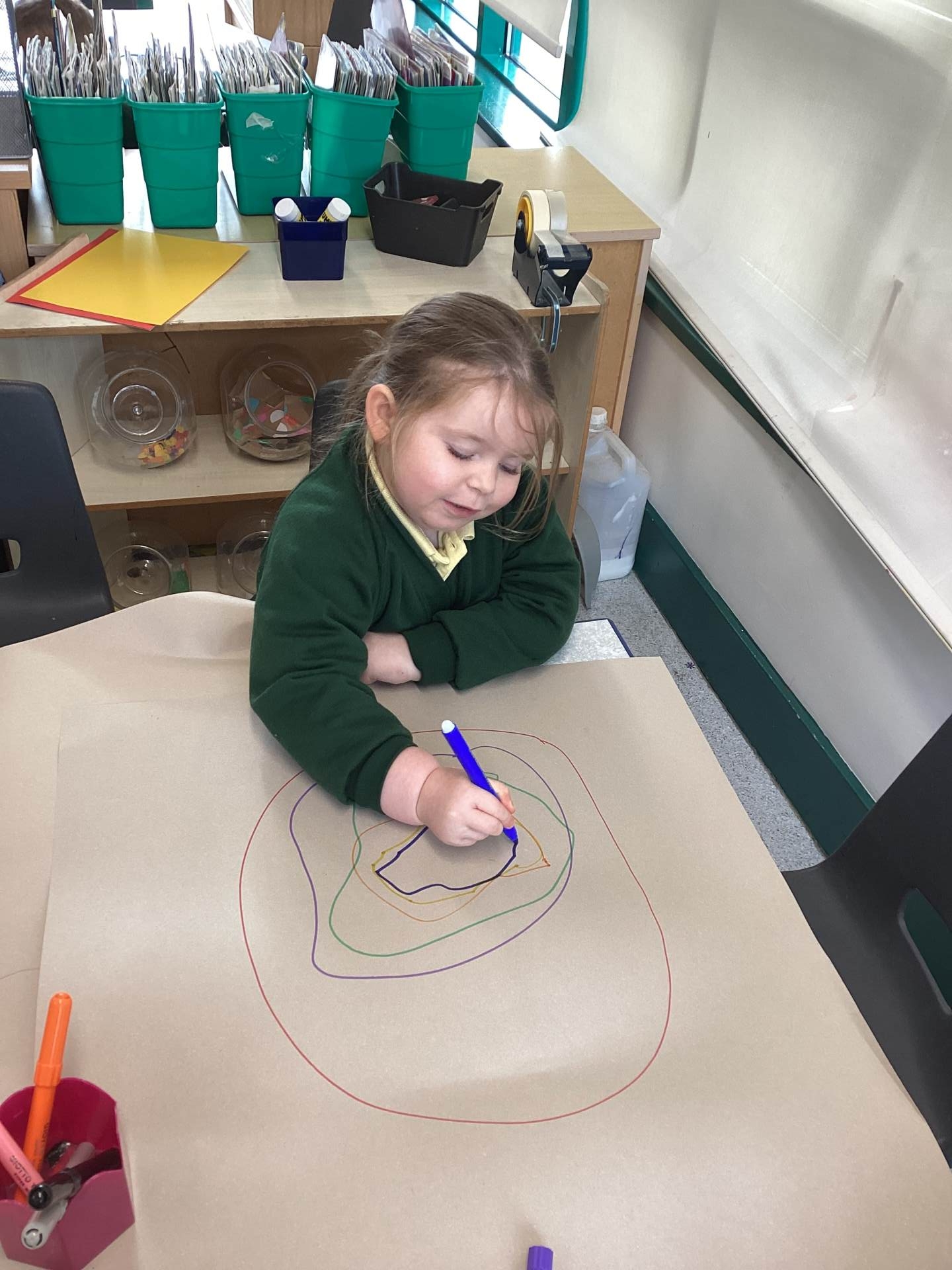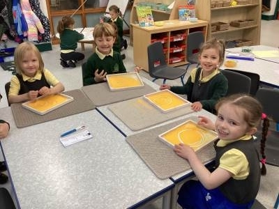 This week we have also had a focus on making circles in different ways. We took turns to play a fun circle drawing game!