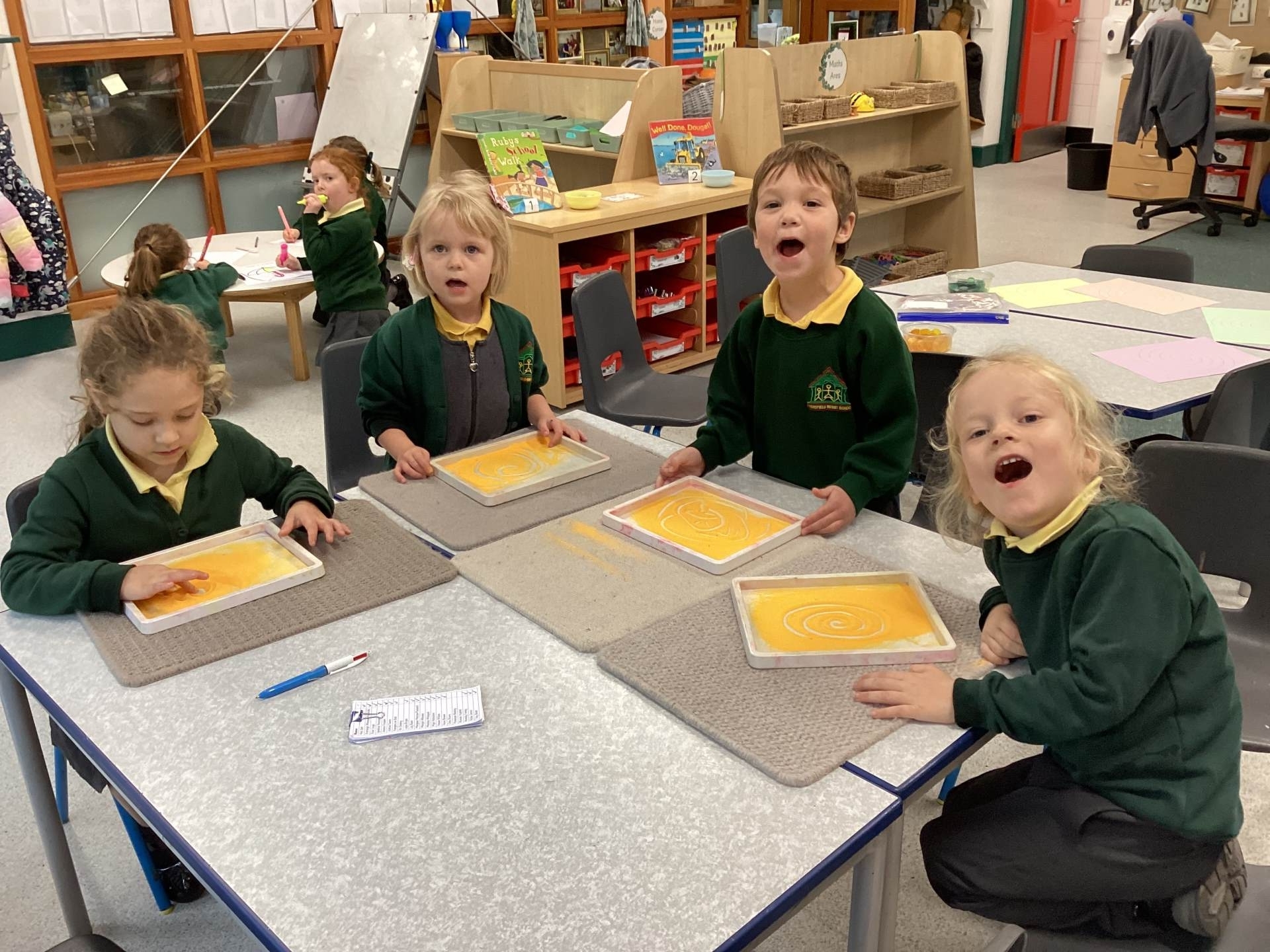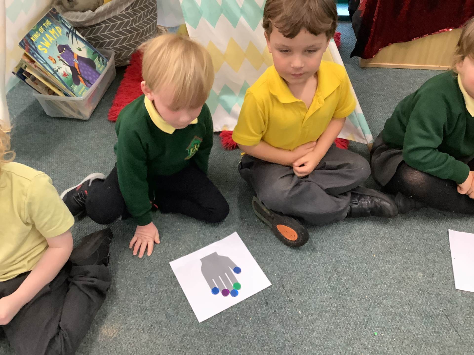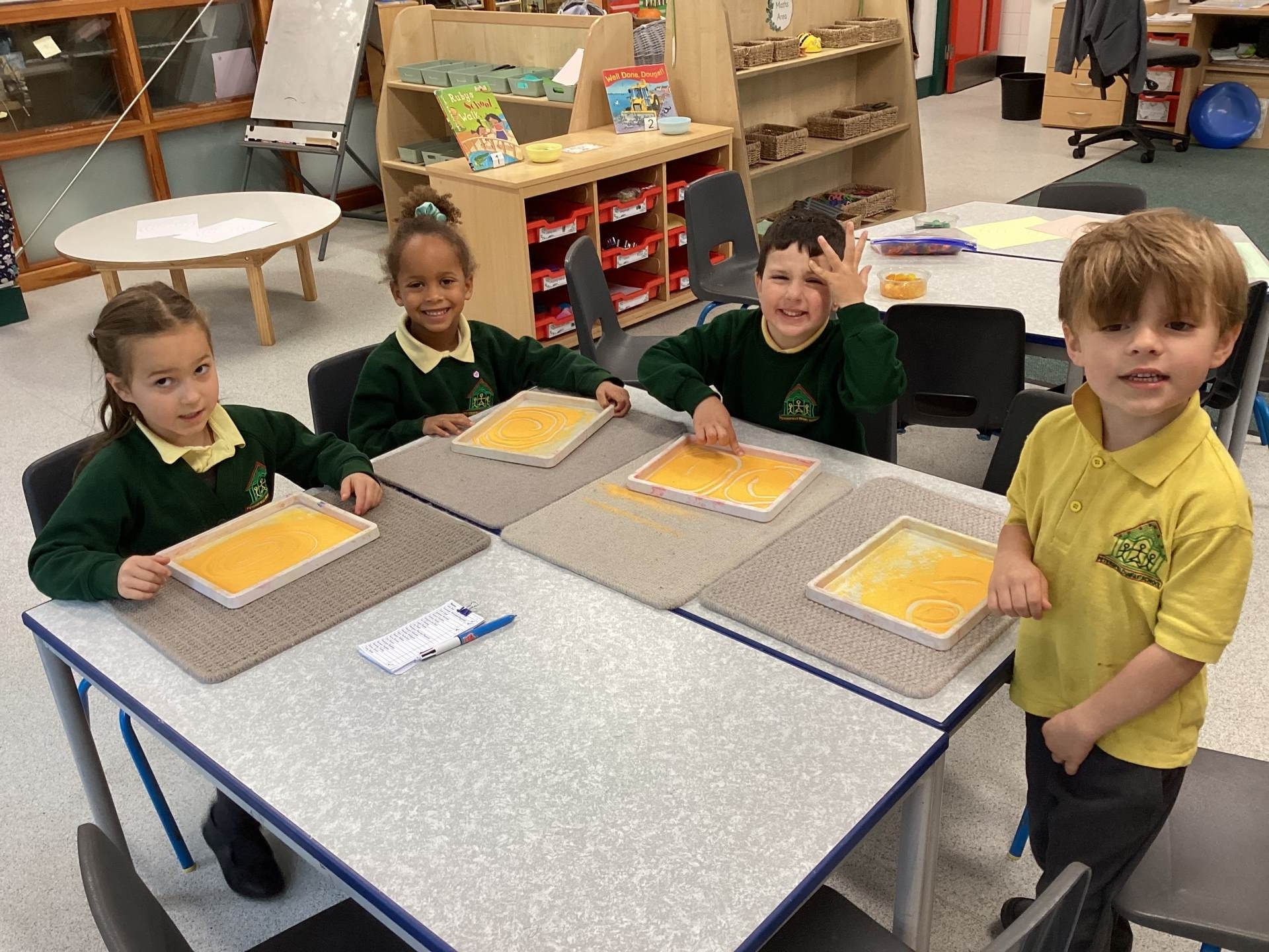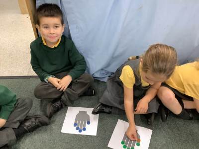In maths, we had fun making 5, using counters and our fingers to help us.