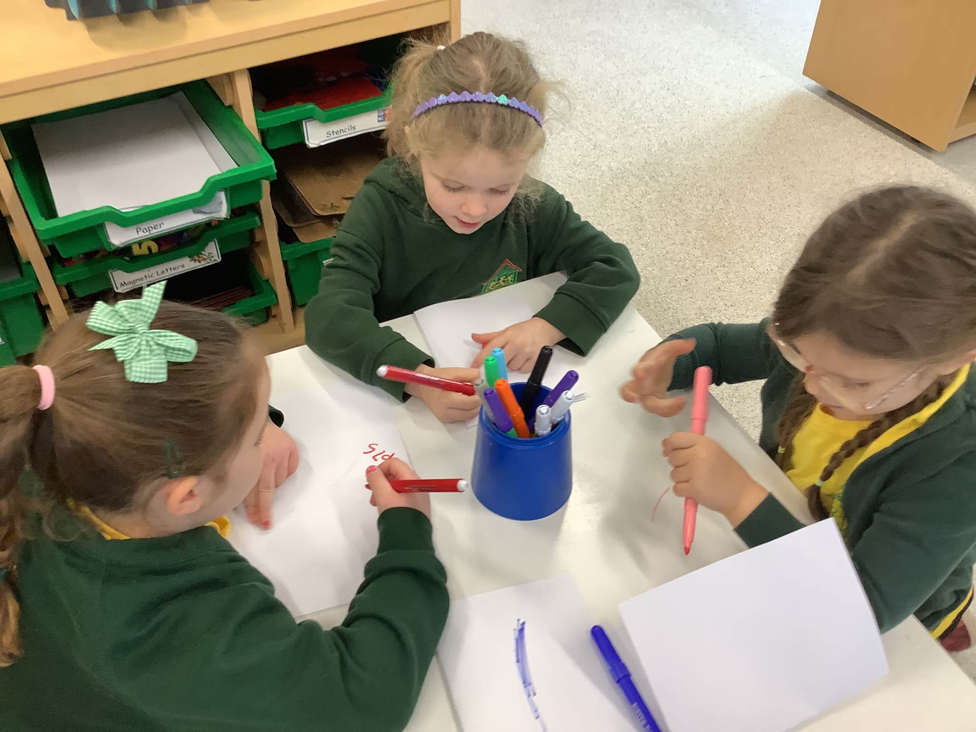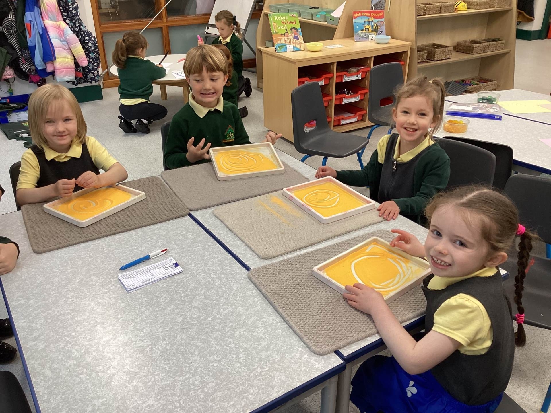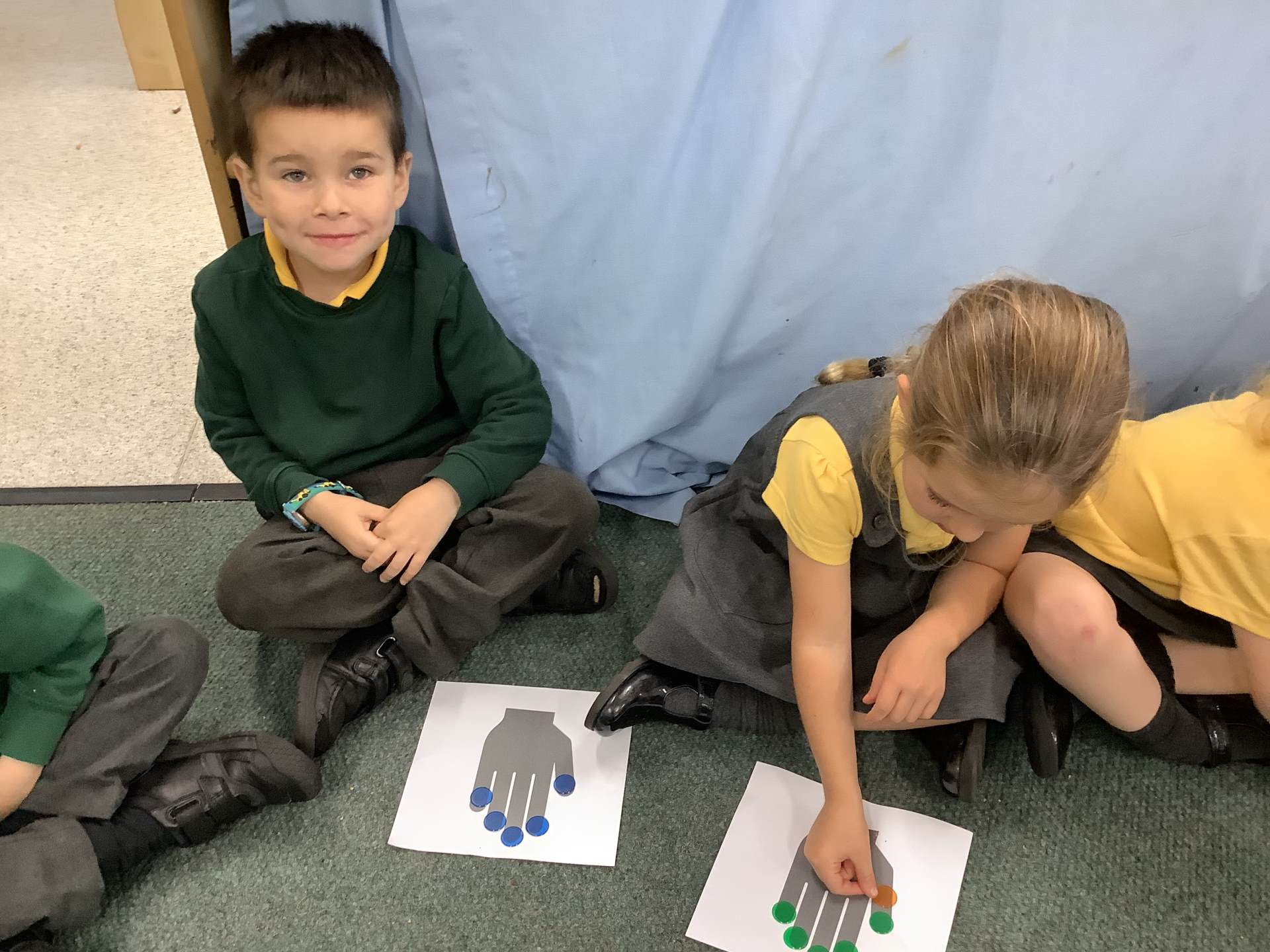 In maths, we had fun making 5, using counters and our fingers to help us.