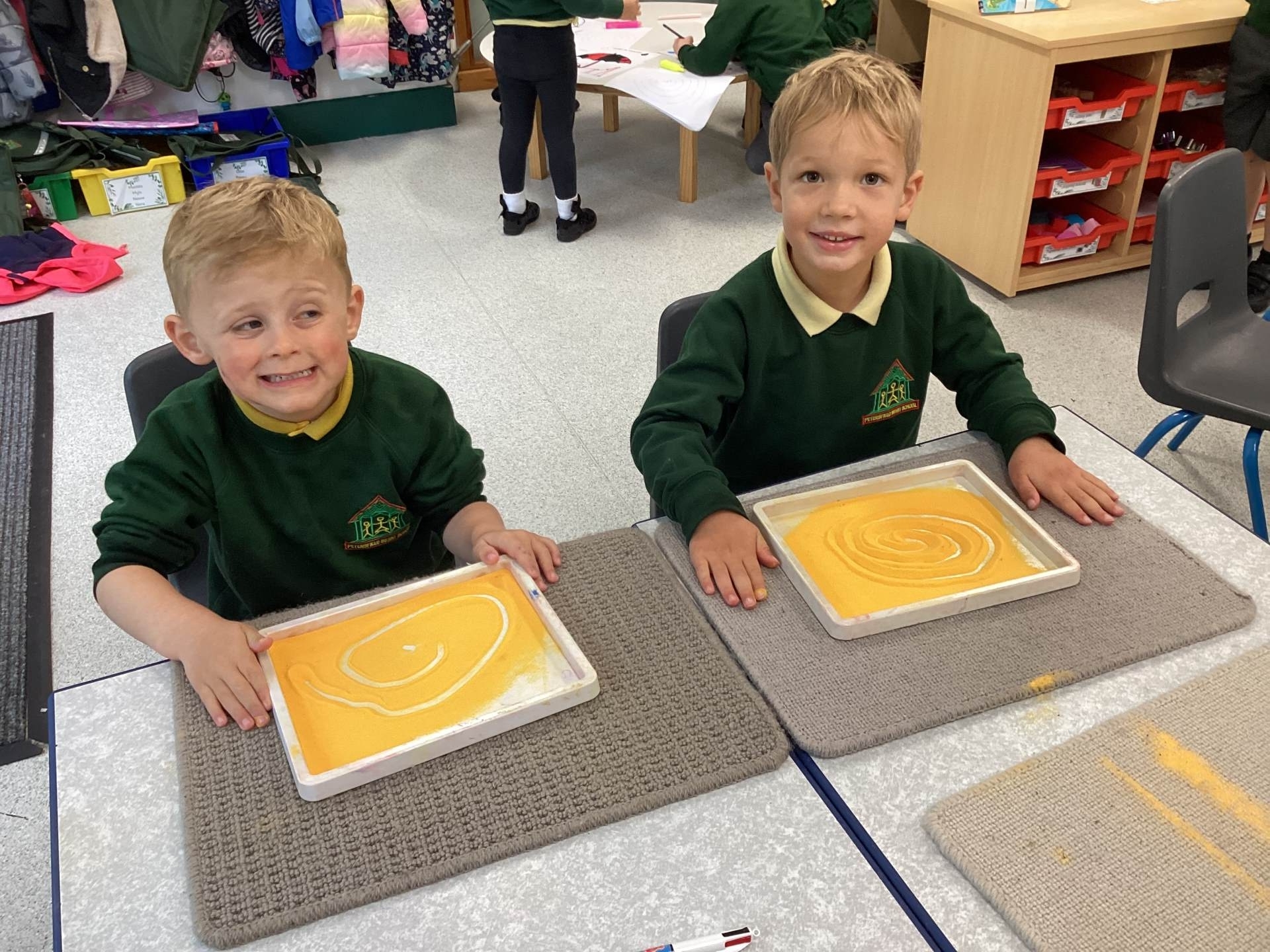 We enjoyed drawing spirals in magic sand using our index fingers.