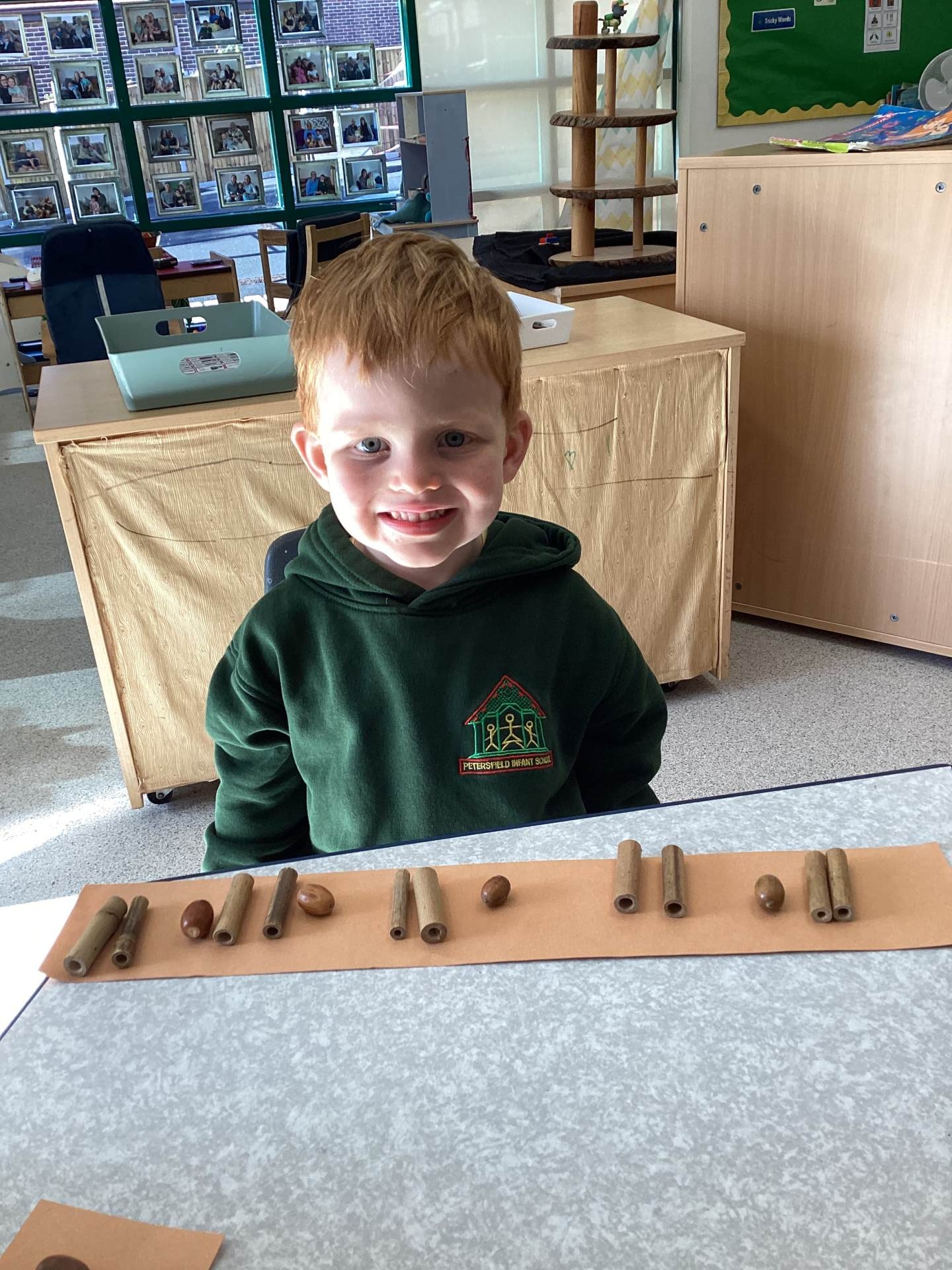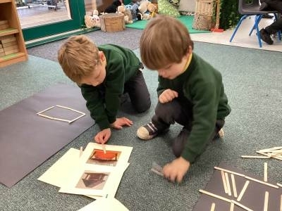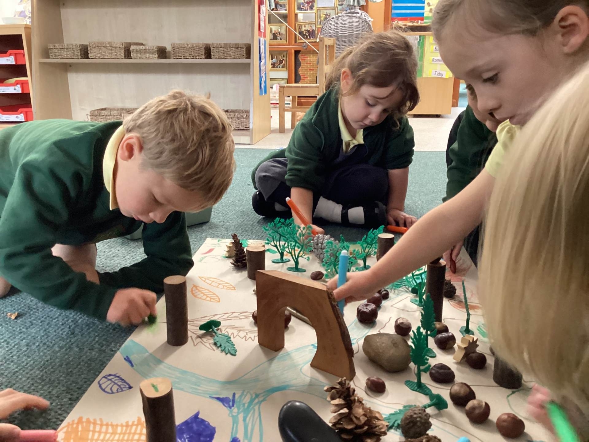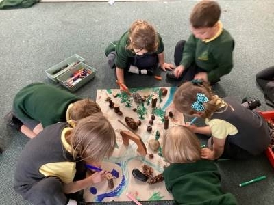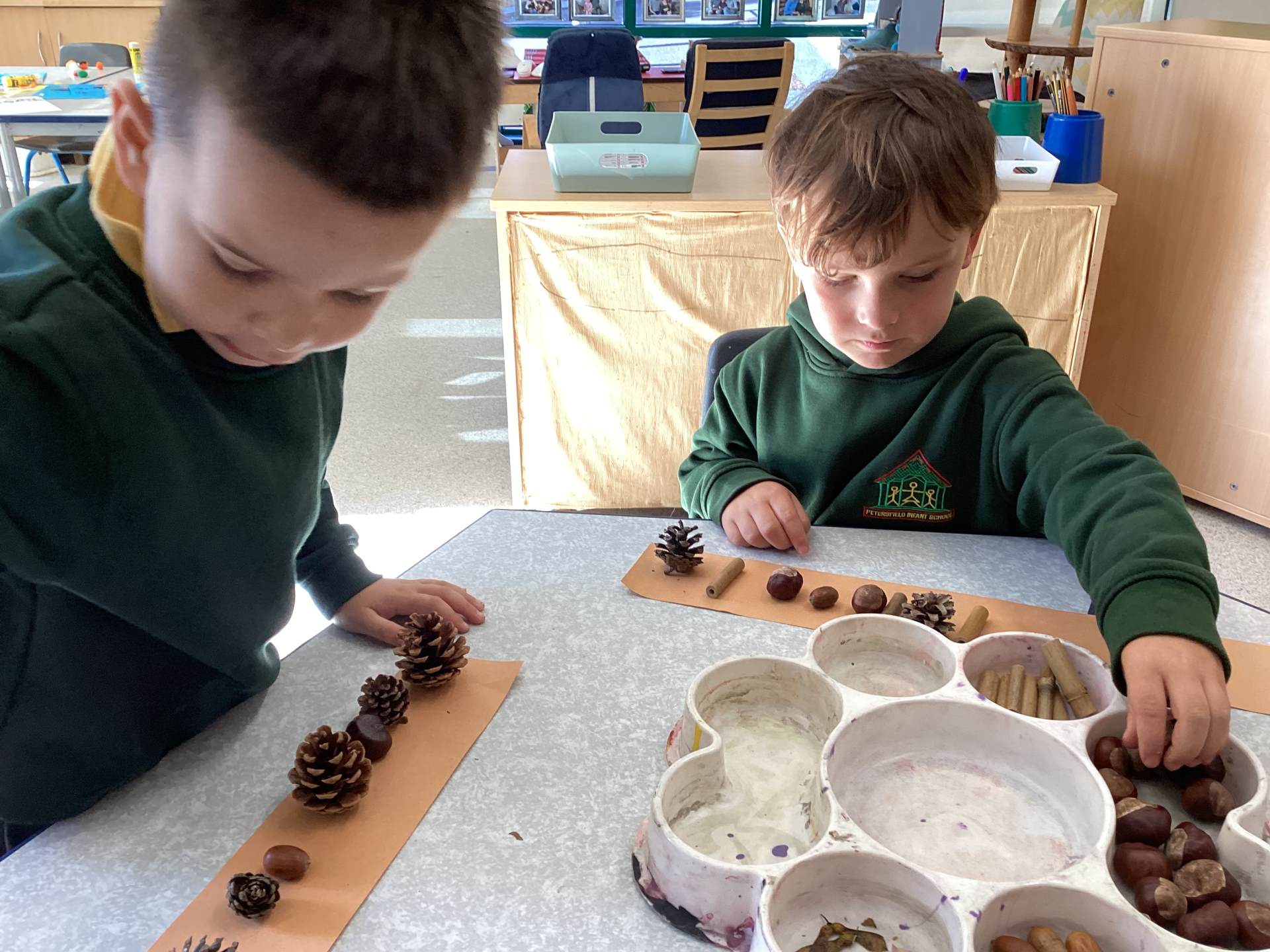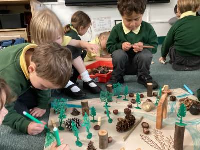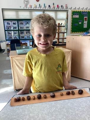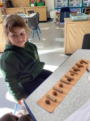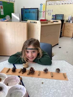 We also explored repeating patterns using natural materials such as acorns, conkers, logs and fir cones. It was lovely to see the children working so carefully and creatively!