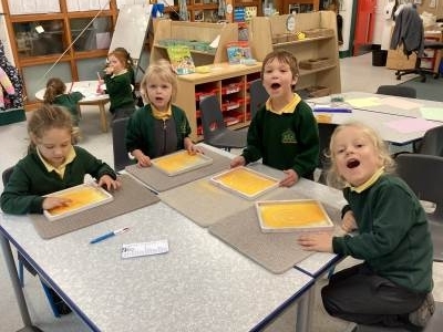 This week we have been learning all about the importance of storytellers as part of our RE. We know that books are important (and can be exciting, serious, sad or funny), and we know that a good storyteller is important too! Outside, we investigated objects to find out if they would float or sink. We also went on a maths hunt, and recorded what we spotted using tally charts and numerals - we subitised and 'used our eyes' instead of counting! We have been comparing Petersfield to Antarctica, and enhanced this learning by making loose part snowflake pictures.