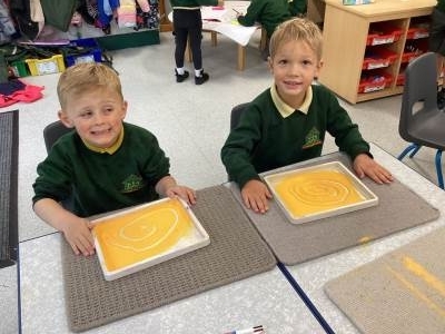 Our mark making pattern this week is a spiral. We used our fine motor skills to make spiral patterns using lots of different materials.