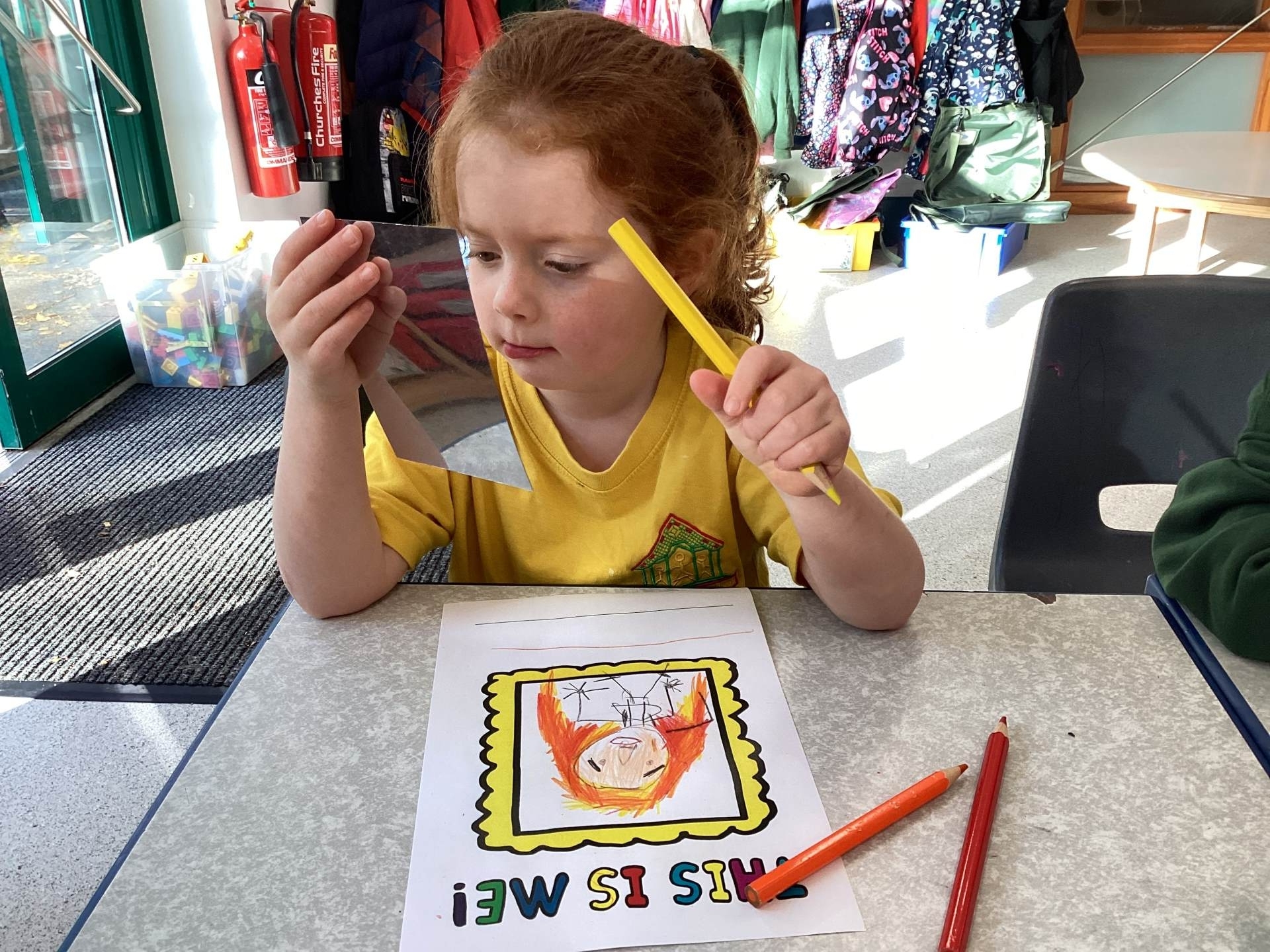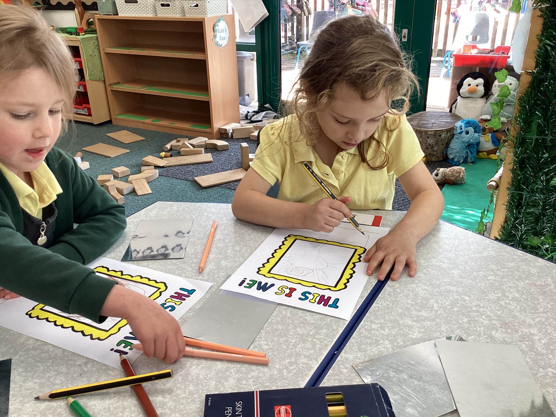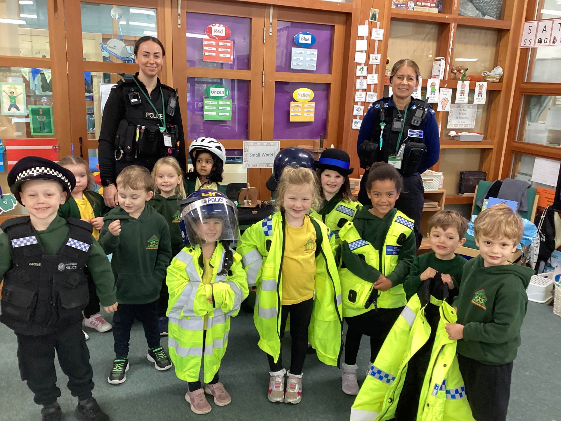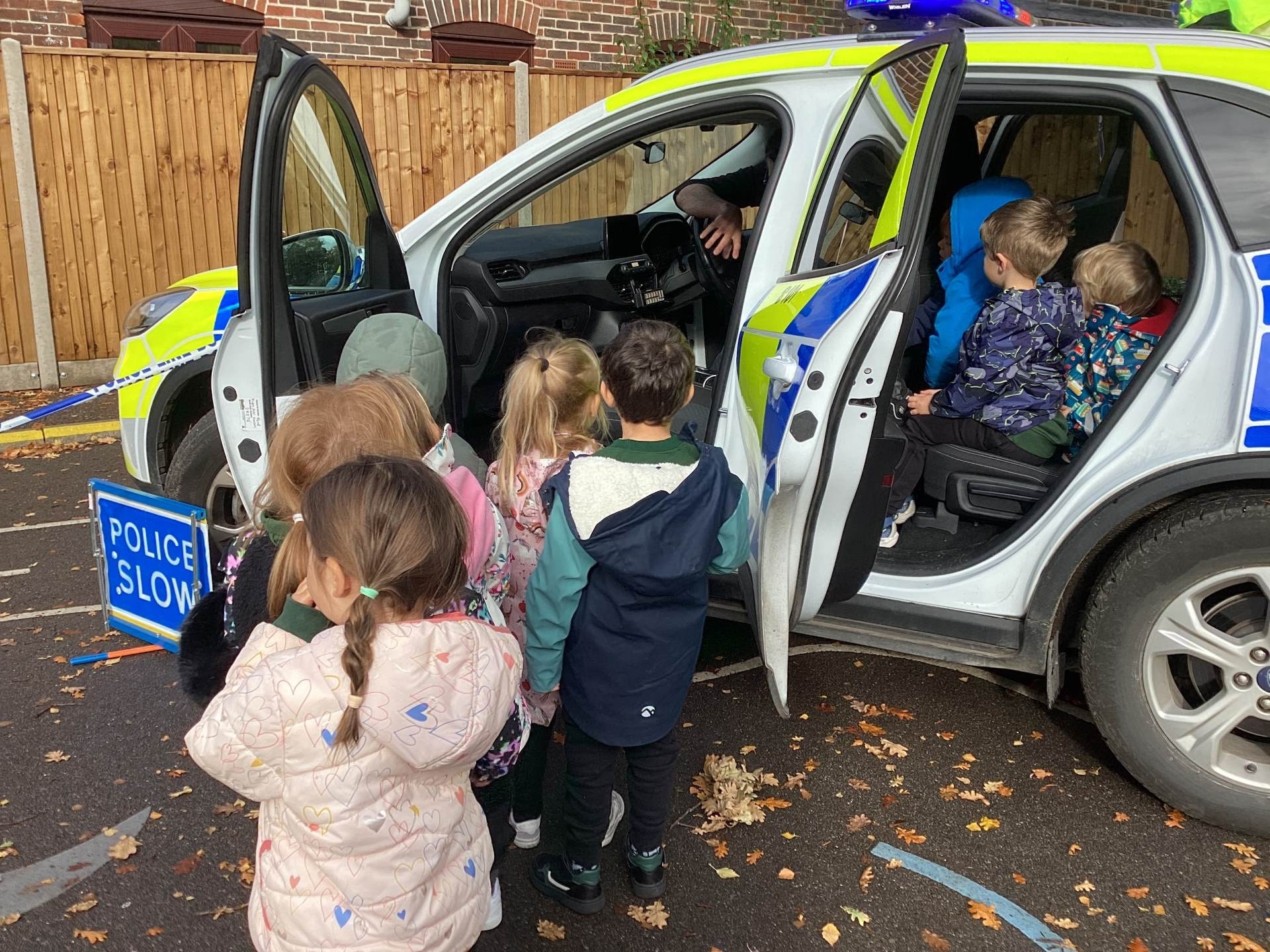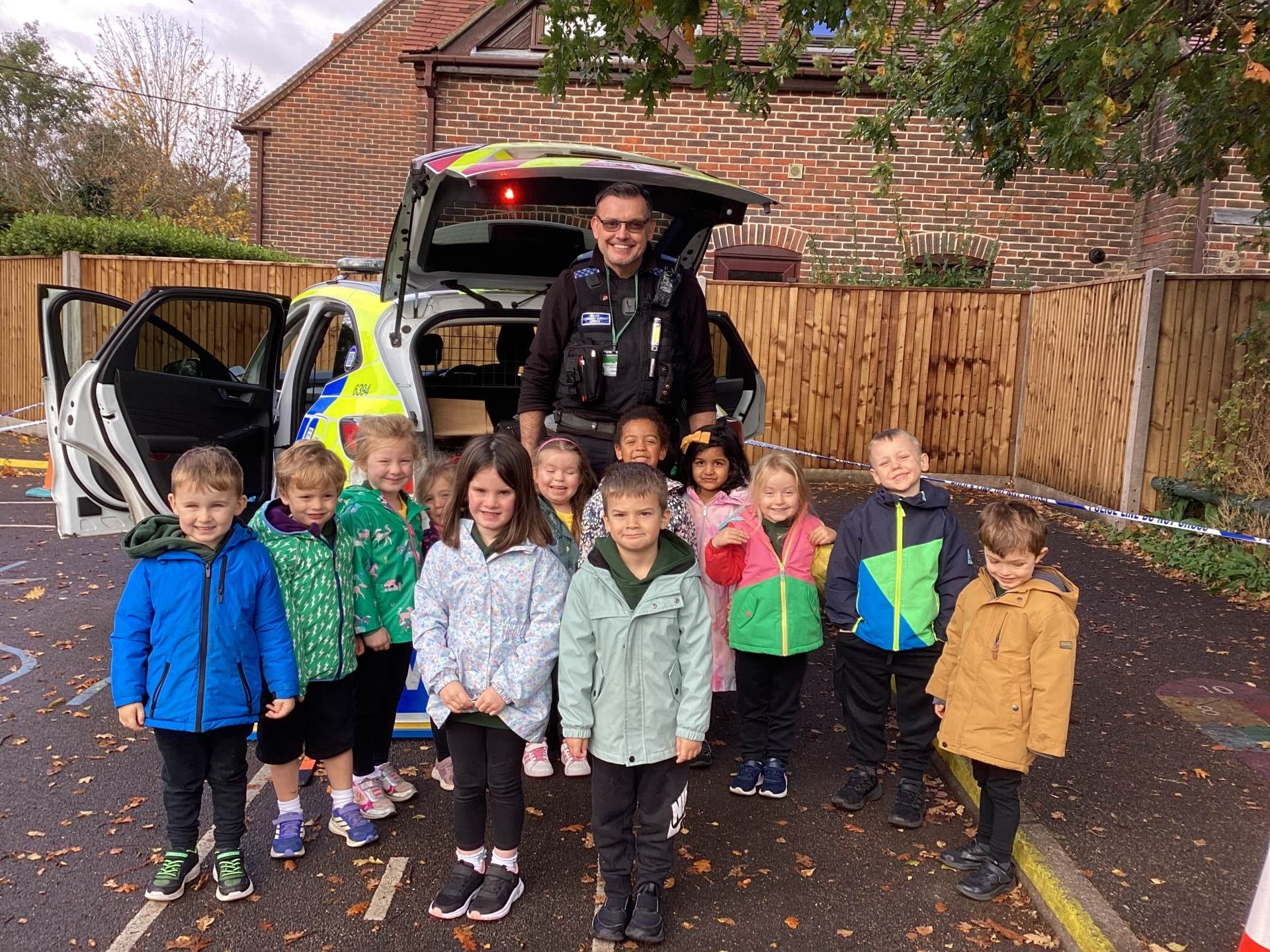 This week we read the story 'The Leaf Thief' in Drawing Club. We were inspired to create our own 'leaf people' which we used in our play. In Funky Fingers we have continued to improve our fine motor and scissor skills, by having a playdough disco, punching holes, and cutting out leaves for our Autumn wreaths. We were all excited to have a visit from the local police this week! We learnt about how the police help us, all the equipment they have and how to turn the flashing lights on in the car! We all had a great time. As we have a half term break next week, we drew a self portrait on our new 'This Is Me' books to take home for the week to record some of the things we get up to. We look forward to sharing the book with our friends when we return to school!