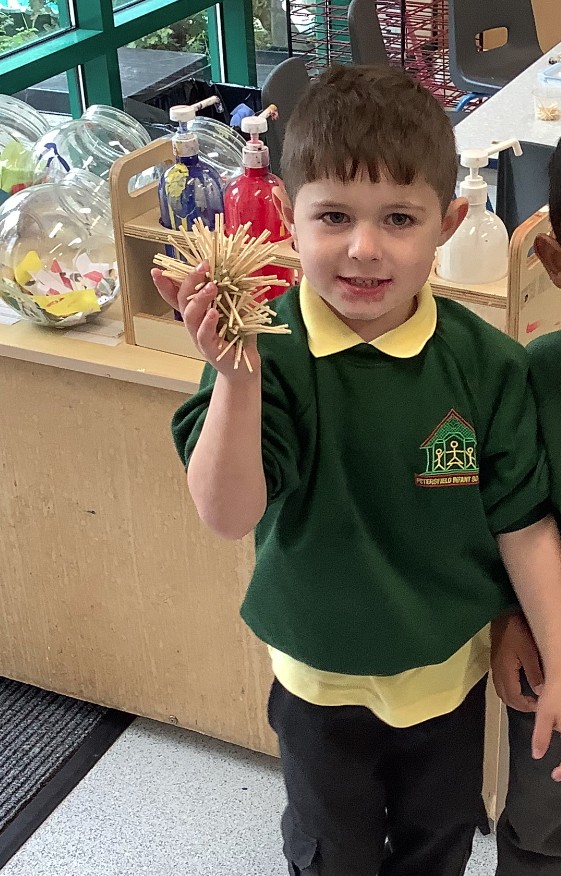 This week we read the story 'It Was A Cold dark Night' in Drawing Club. Little hedgehog Ned, is looking for a home to hibernate. The children really enjoyed the story and some used the loose parts to create their own hedgehogs.