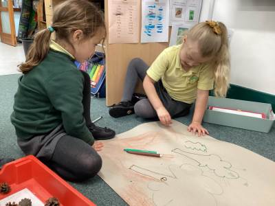 This week we have been reading the book, We're Going On a Bear Hunt, by Michael Rosen. Using small world objects and large paper we then created maps to retell the story. We thought about where we would find the bear and what other important places we needed to put on our maps. Outside, we went on a real bear hunt! We kept a tally of all the different coloured bears we found. We had to look carefully to find them all! We also got active and recreated obstacles to climb over, under or through, just like in the story. We rolled the dice to see which action we had to do. There were some tight squeezes!