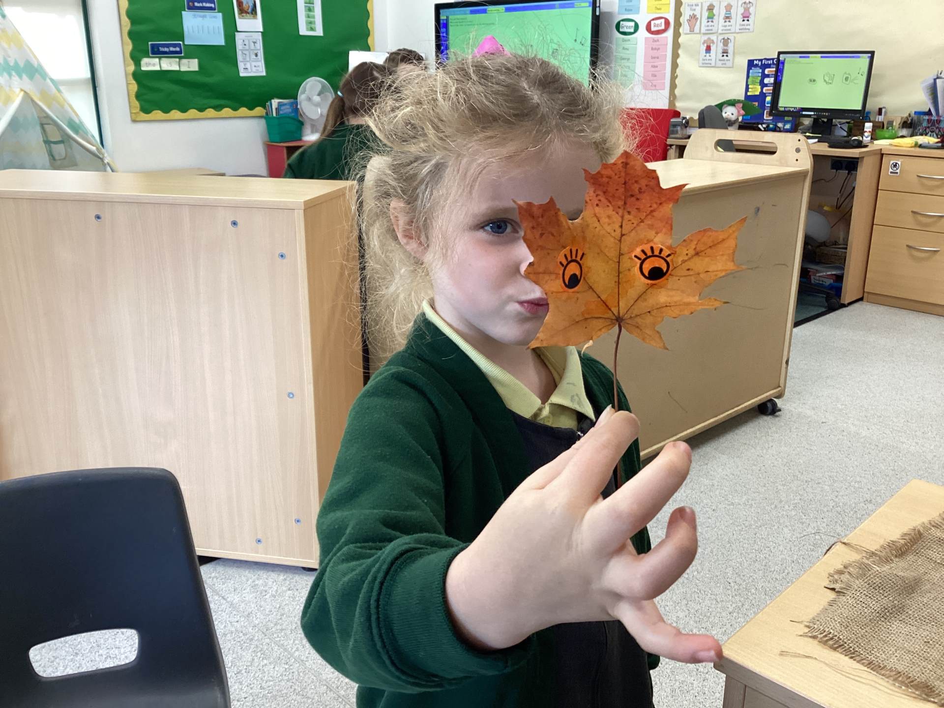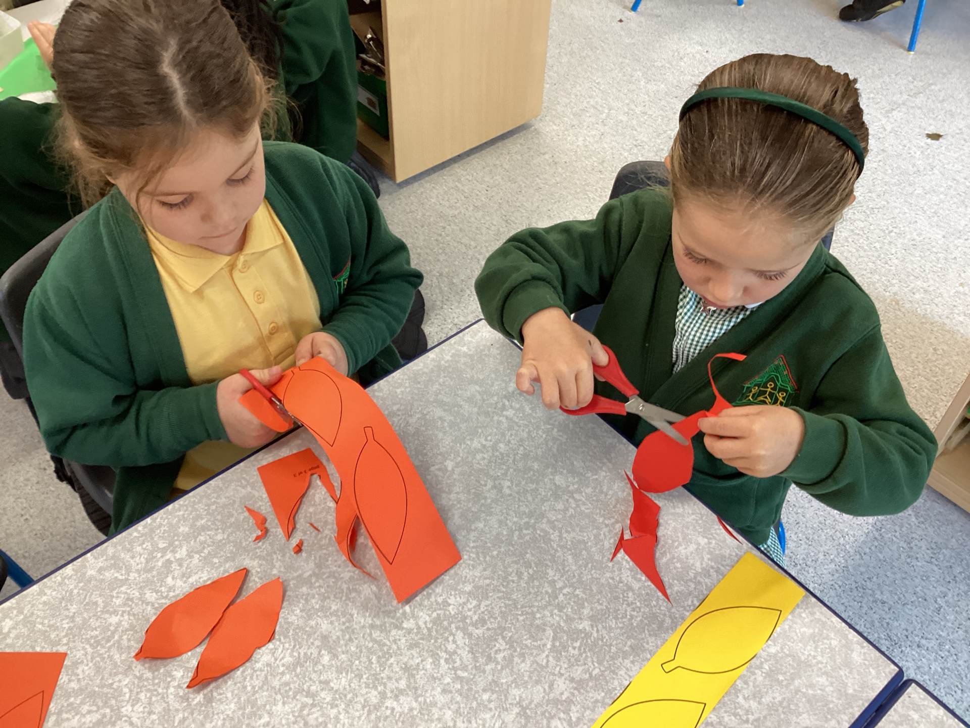 This week in Year R we have been improving our fine motor and scissor skills, cutting out leaves for our Autumn wreaths.