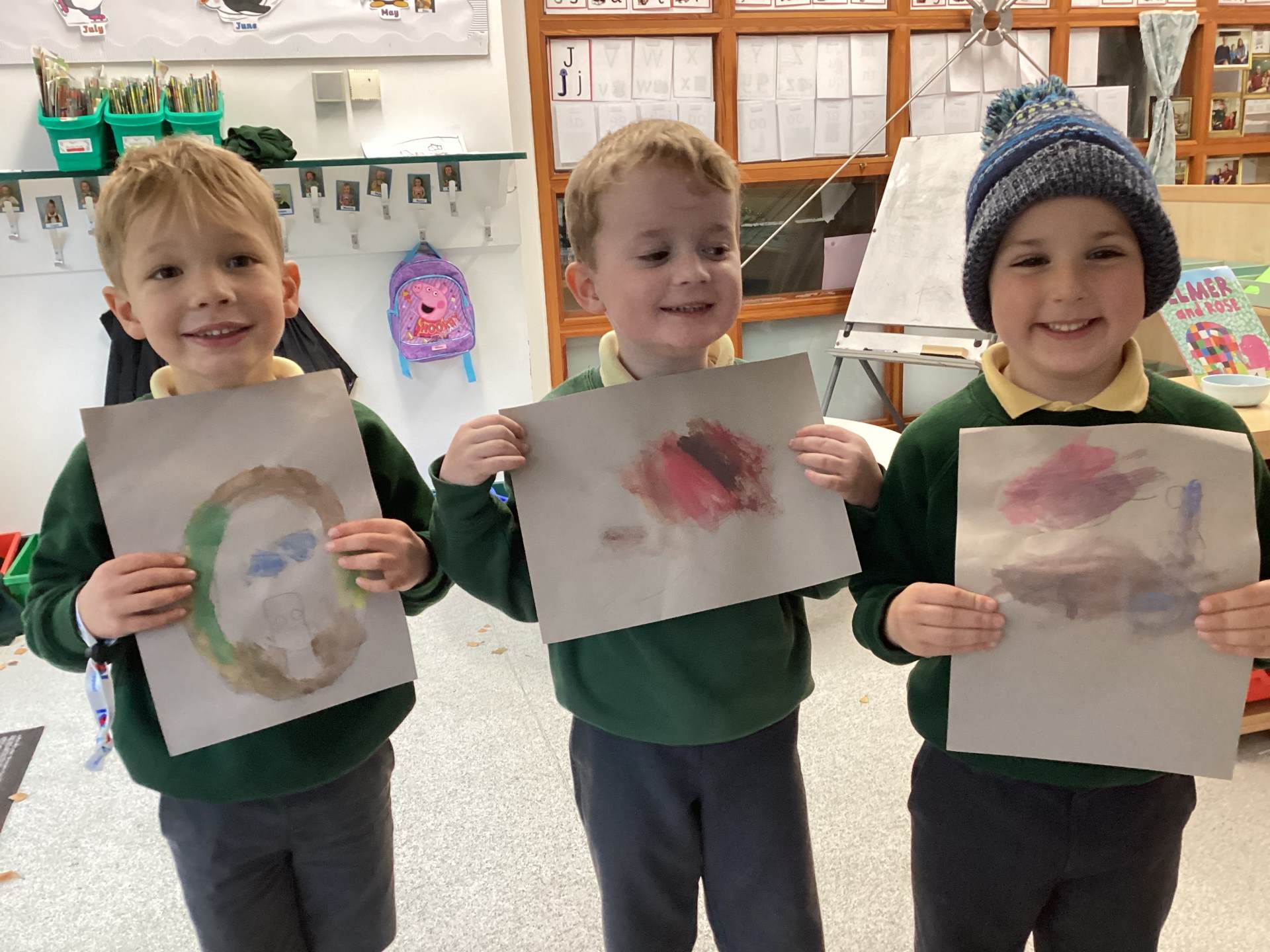 This week we have been learning about celebrations! In Drawing Club book we have been reading Elmer, and this inspired us to think about and create everything we might need for an Elmer Day Celebration, including cakes, decorations, costumes and cards. We have also have been making our own patterns with different colours.