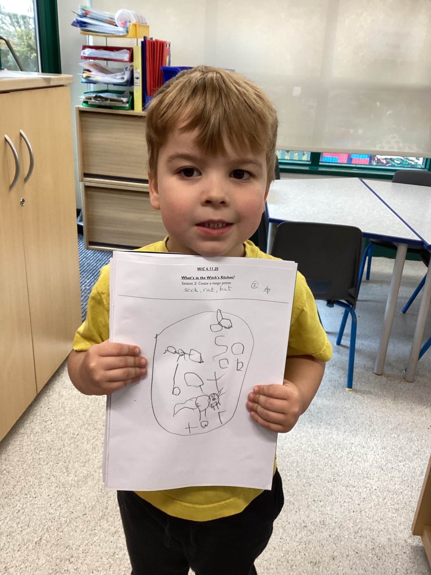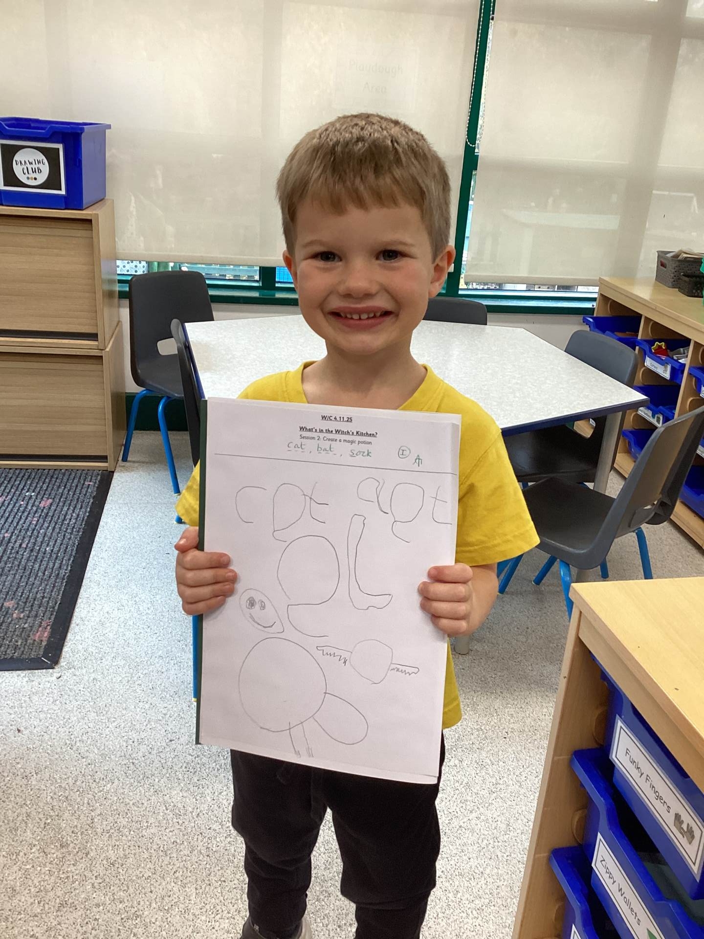 This week we read the story 'What's in the Witch's Kitchen?' in Drawing Club. The children loved choosing which way to open each flap and seeing what was under them! This inspired us to make our our own magical potions. Some of us made wands on the making table, and we explored different ways to use paint including printing circular 'bubbles' from our cauldrons!
