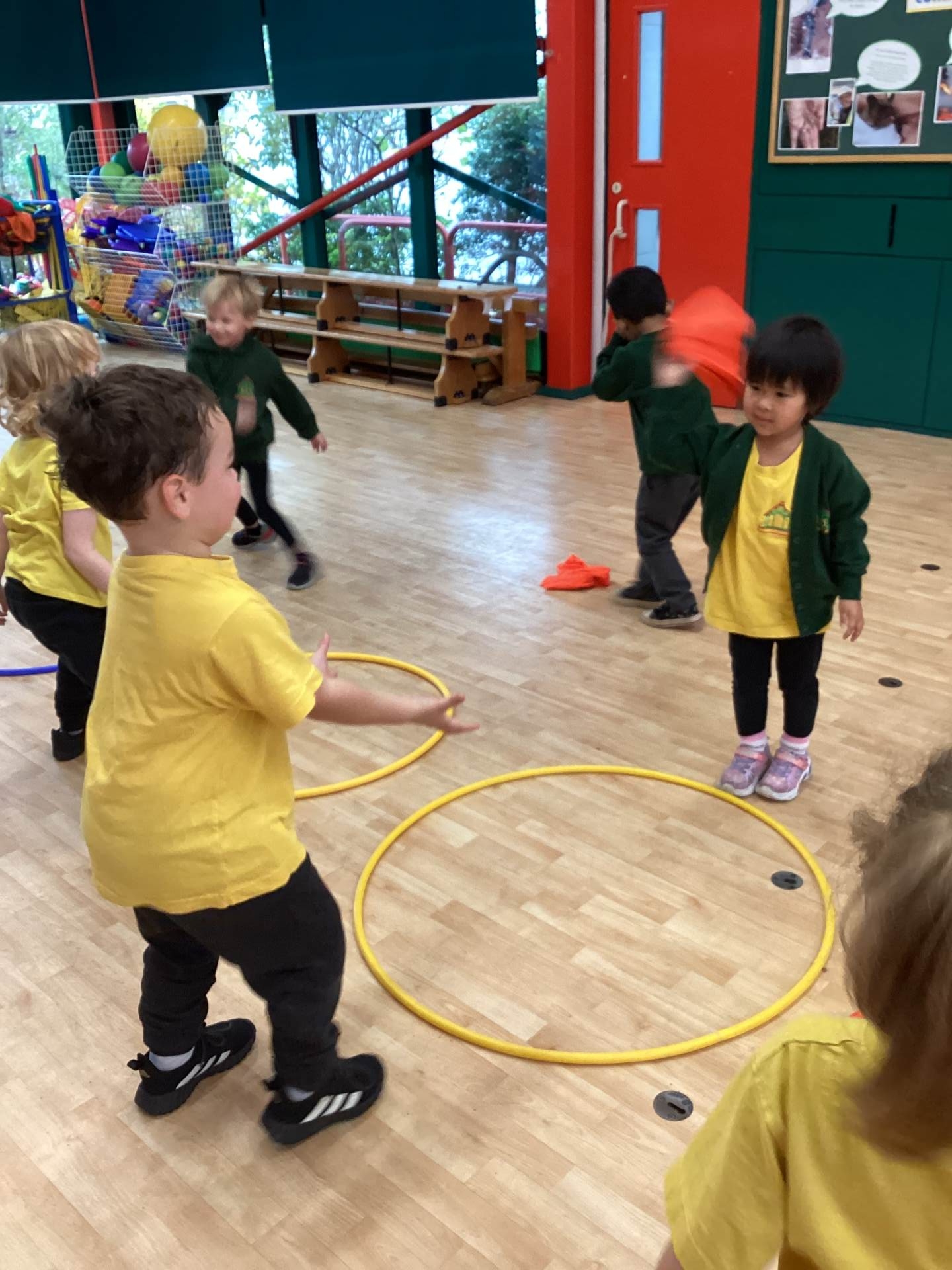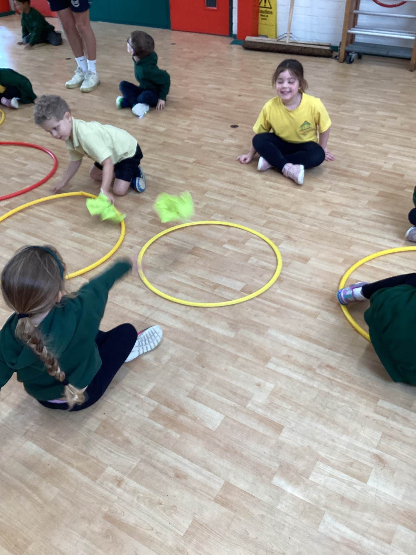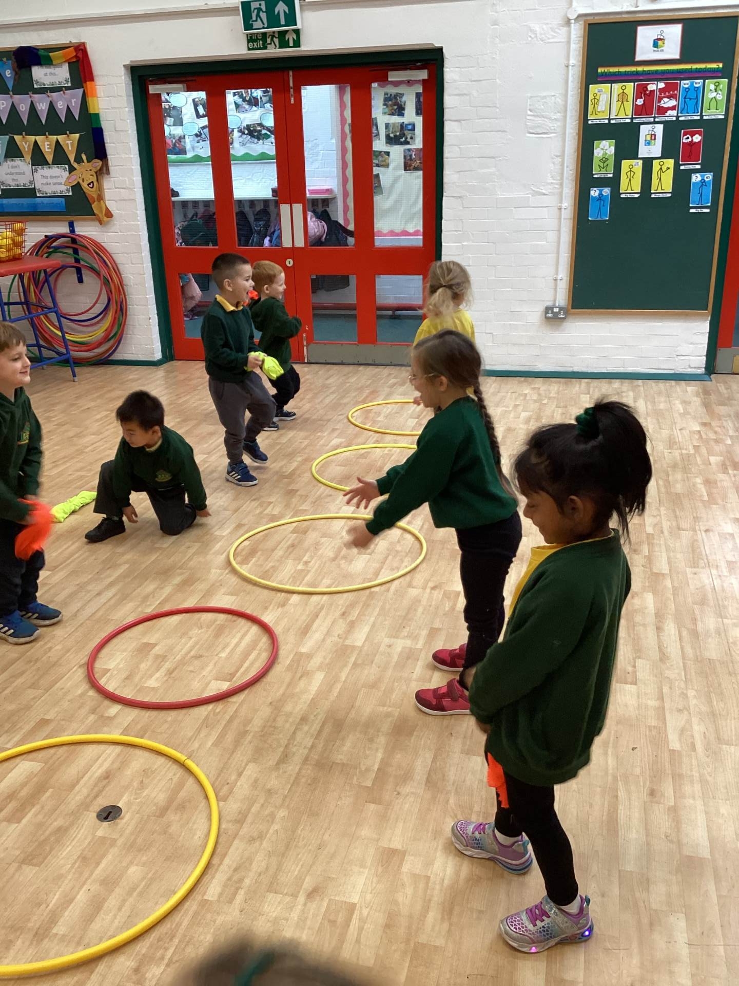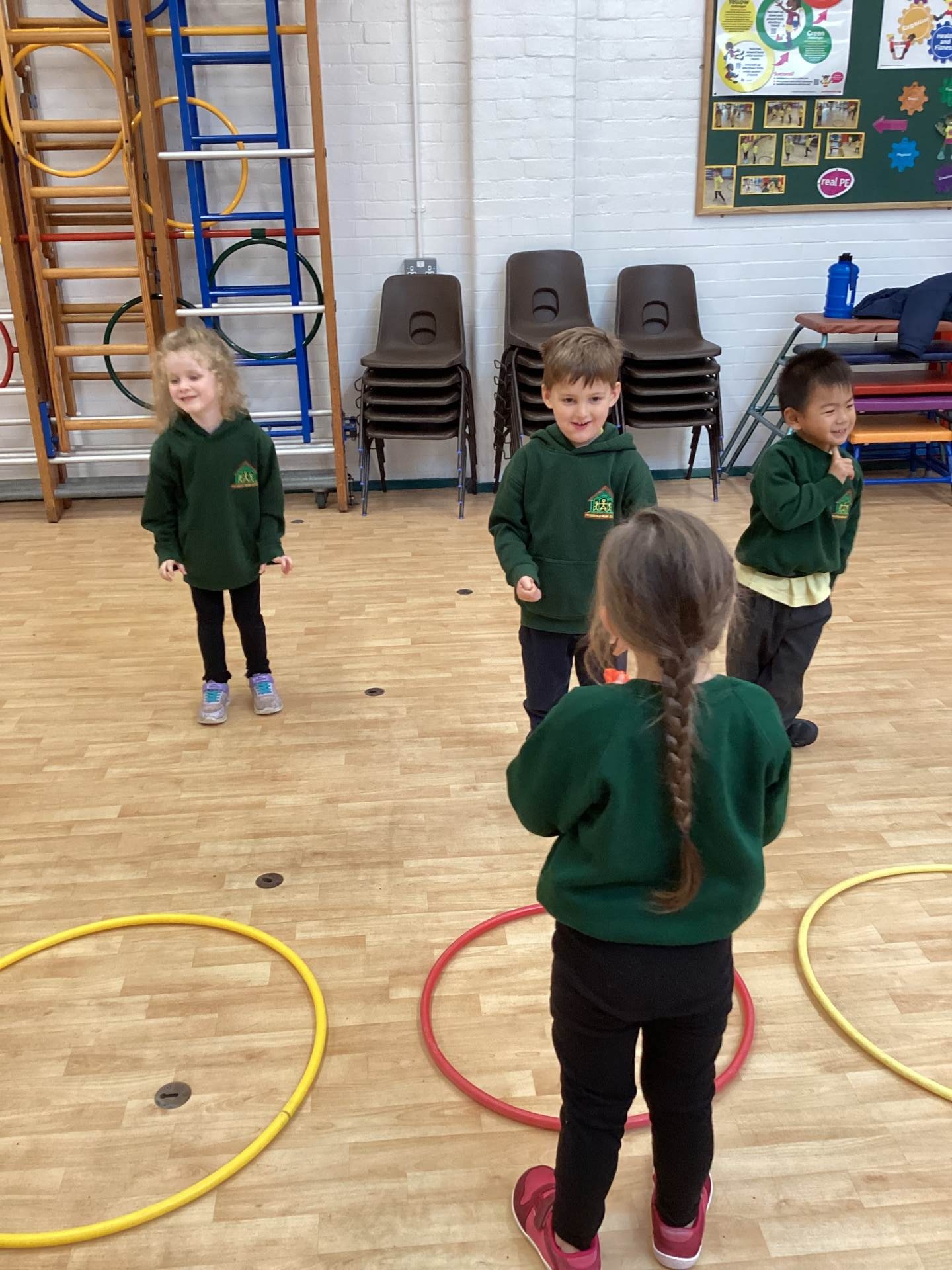In PE we have been moving in lots of different ways. We loved hopping, jumping, crawling and running. We practised balancing on one leg too! Later on, we had to avoid the obstacles on the floor when we played 'the hoops are lava'!