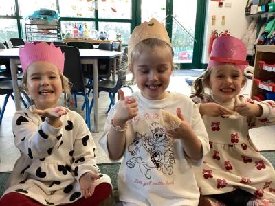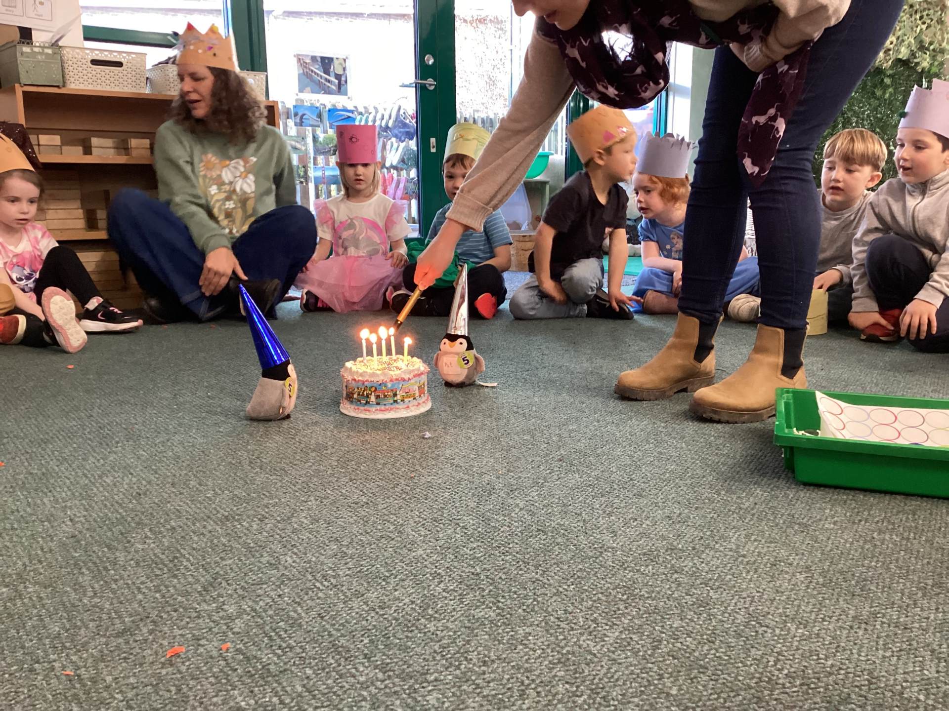 This week we have been preparing for the birthday celebration of our class animals. We have made birthday cards, bunting, paper chains, playdough cakes and birthday crowns. Today, when the birthday finally arrived, we had a blast dancing to music, playing games and eating cake (real cake!)!