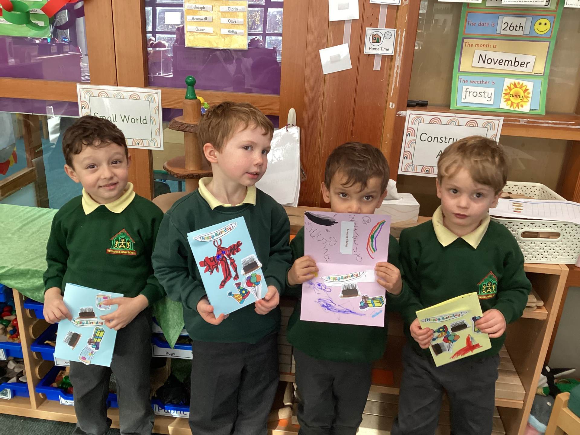 The children have made bunting and paperchains to decorate the classrooms and made birthday cards to give to their class animal on the special day.