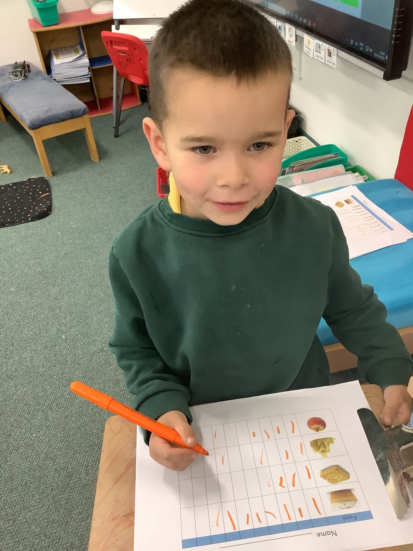 In Maths we have been learning to compare groups and numbers using the words more, fewer and equal. We used our new skills to help us fill out tally charts to find out what our favourite breakfast cereals is.